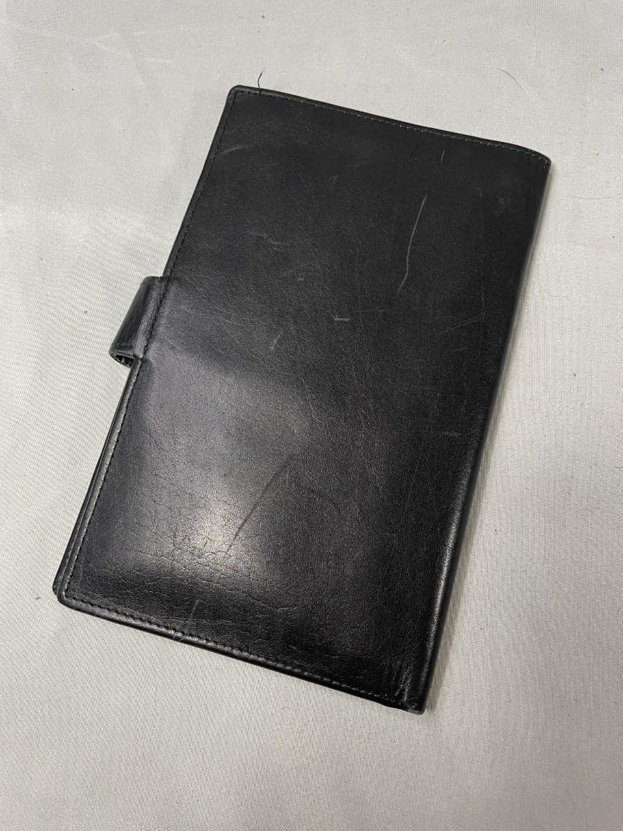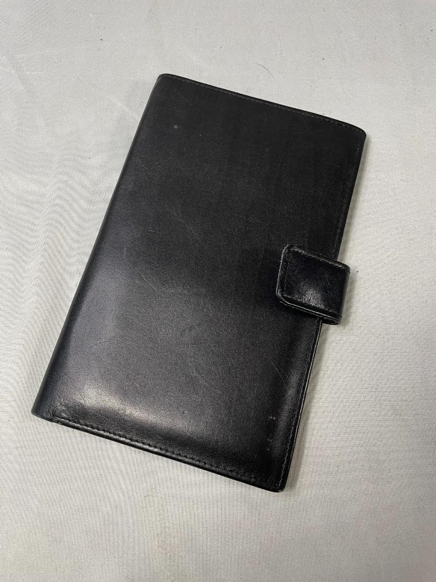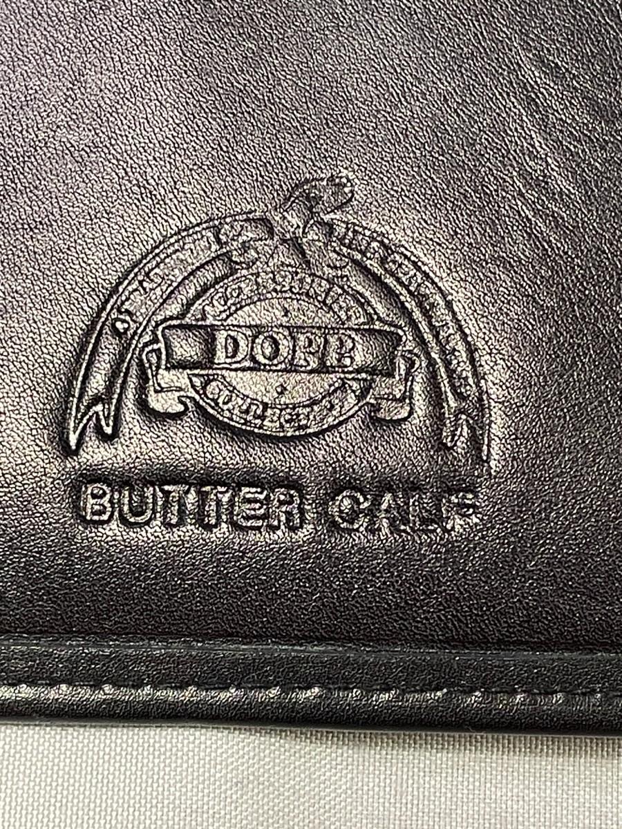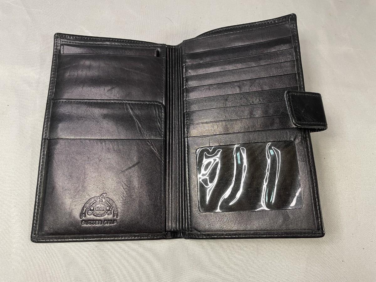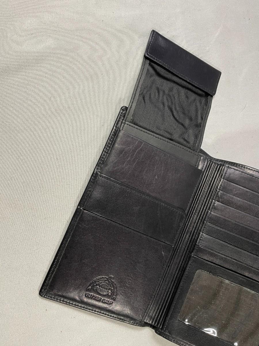 This is a never used wallet that has an additional slide-in/slide-out piece to keep your bills flat. It is about 7.25" x 4.5".