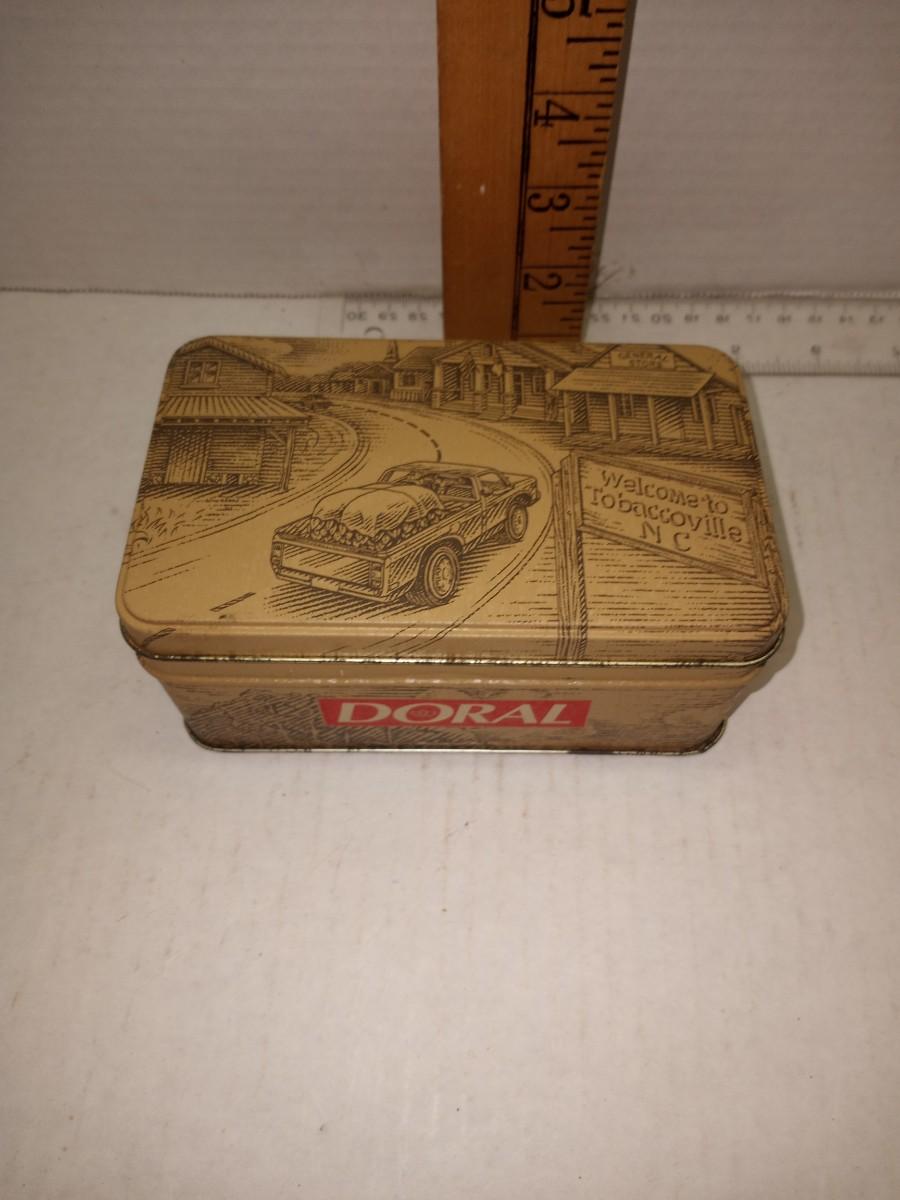 DORAL Promotional Tin Box Detached Lid Collectible Tobaccoville Brown Upcycle