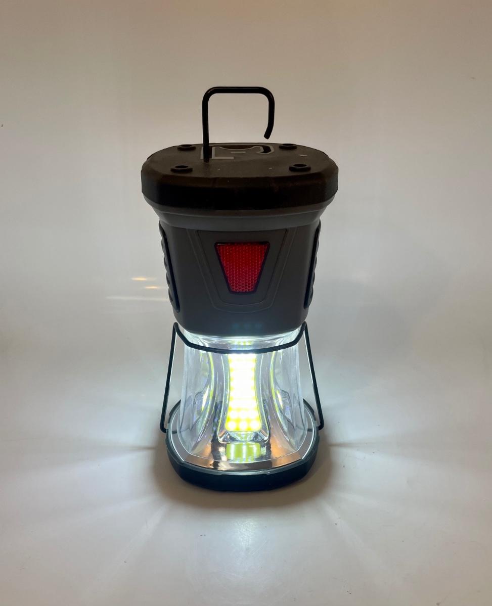 Dorcy 2,000-Lumen Adventure Max Lantern, great for camping and use inside tents. Super bright LED lights with 4 brightness settings, powered by 4 D batteries (included). Also has a red light flasher that either blinks rapidly or Morse code SOS.