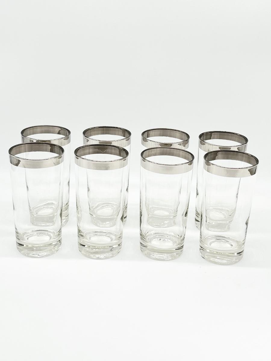DOROTHY THORPE ~ Silver Band ~ 12 Oz. Flat Tumbler ~ Set Of Eight (8)