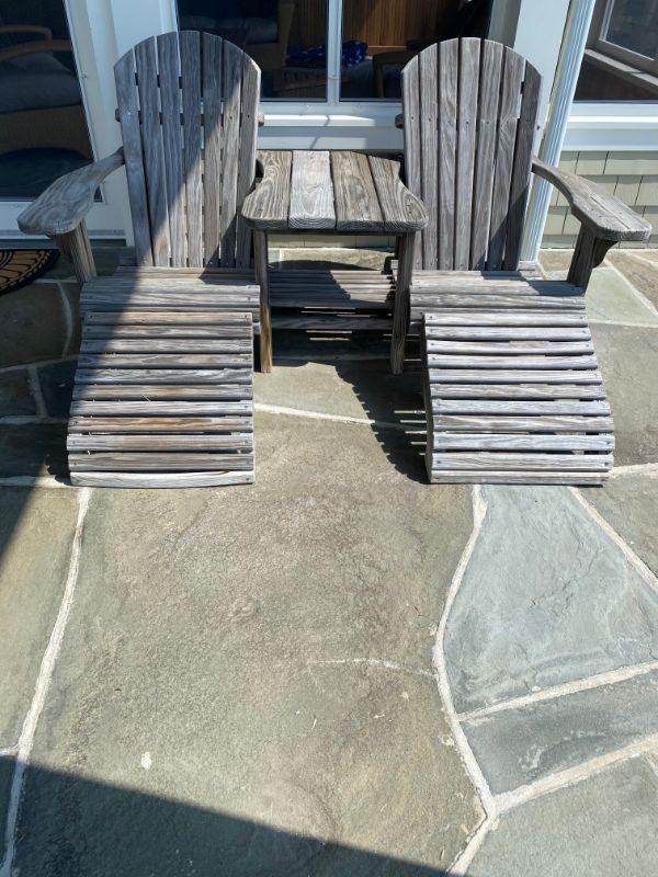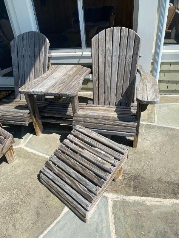Lot #482 Double Adirondack Chair with Center Table and Ottomans
