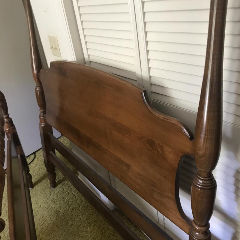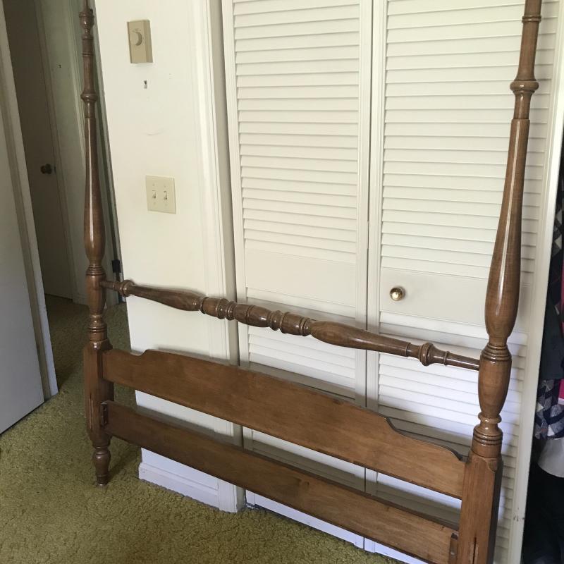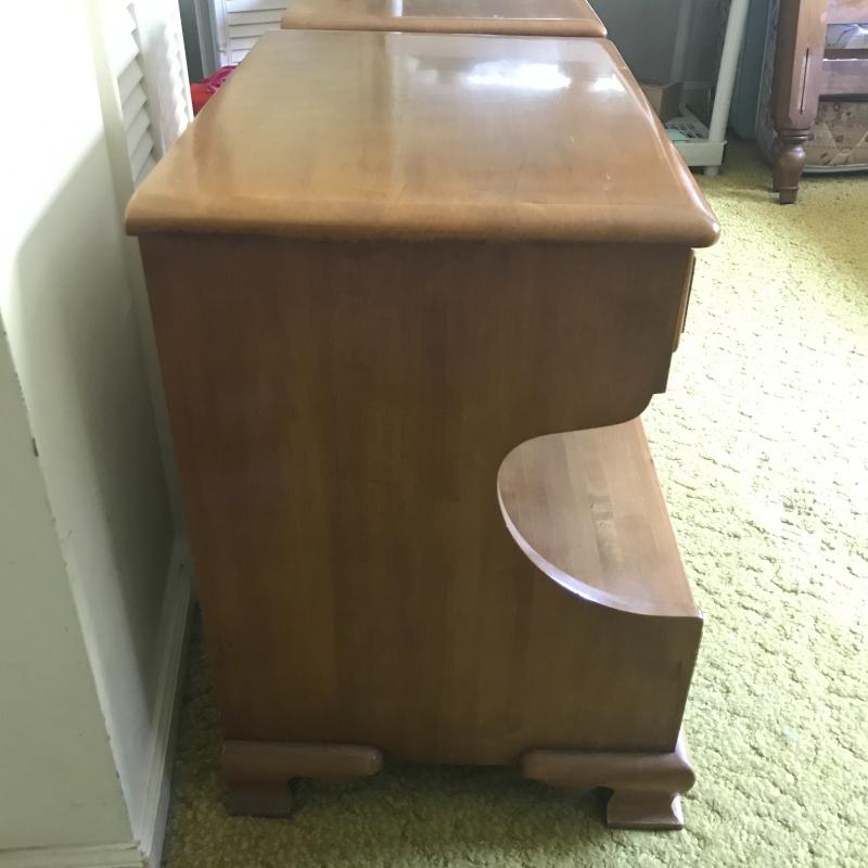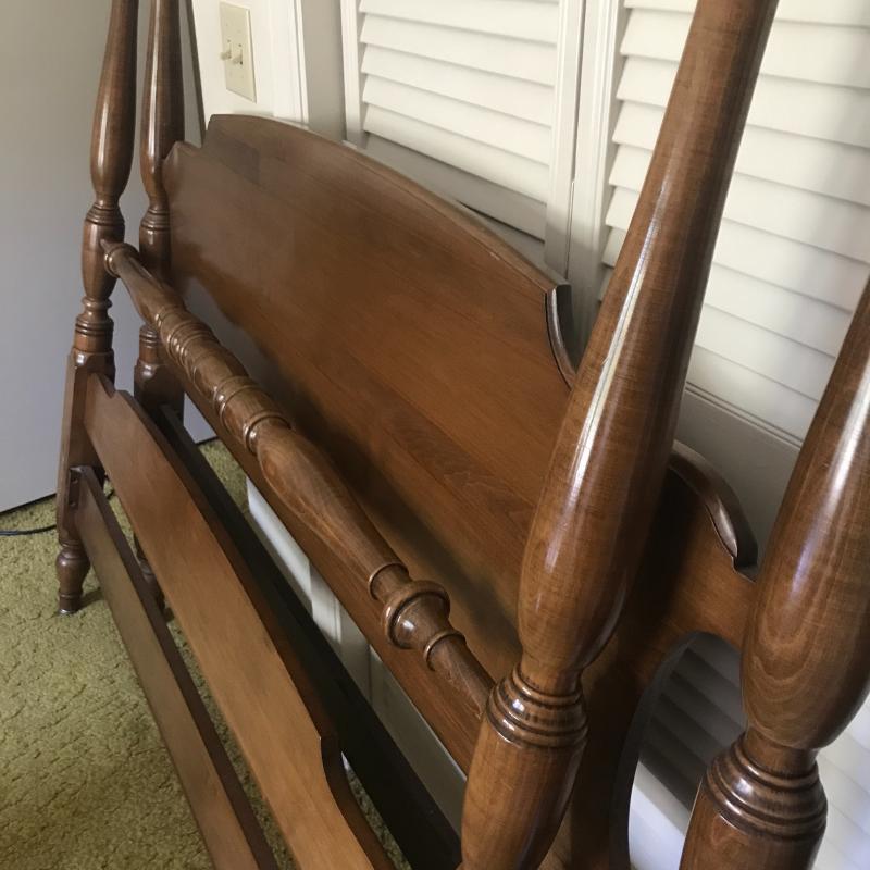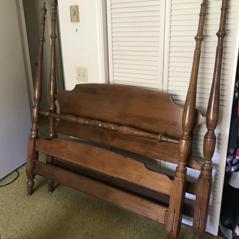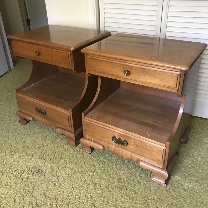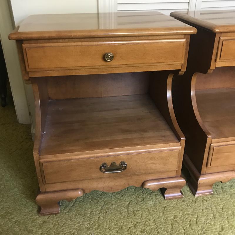 Double bed with maple night stands made by Kling. Head and footboard included. Mattress and box spring available to buyer if desired. Night stands measure 22” x 15” x 24.5”. Headboard and footboard measure 54” x 68”. Local pickup only.