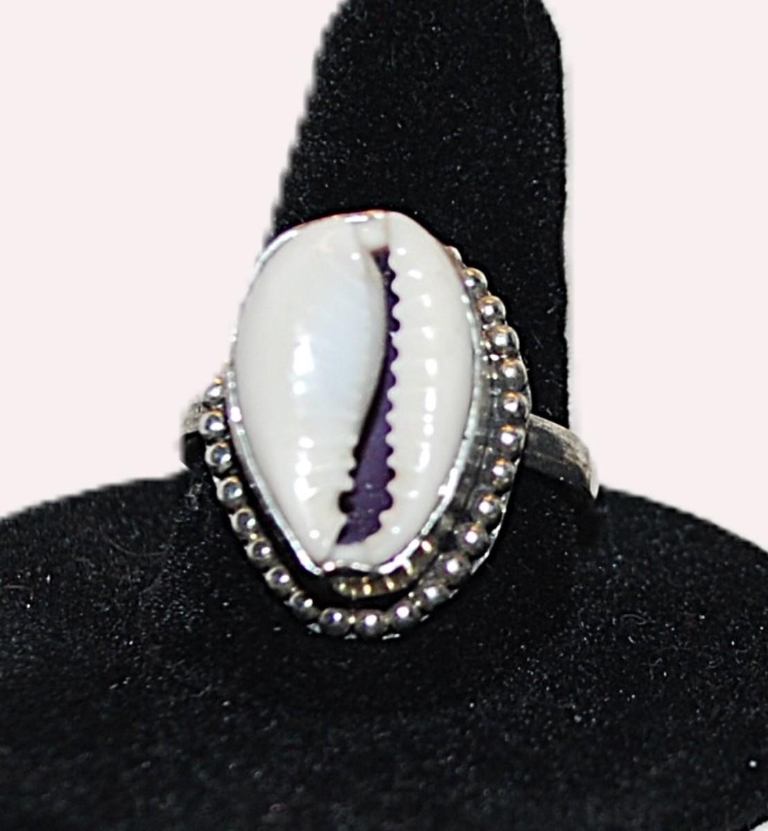 Size 11 Marked .925 COWRIE SHELL Ring with Single Row of Globes Surround on a Silver Band (6.0g)