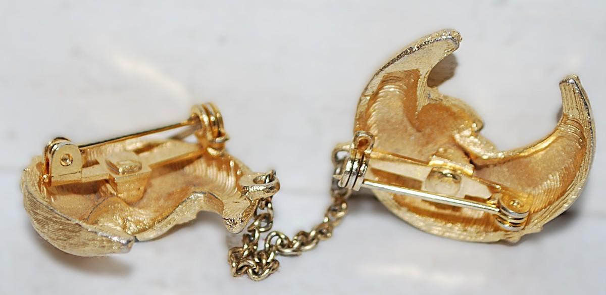 Double Brushed Gold Colored CHAINED HALF MOON BROOCH (1" x 1") on a Gold Tone Setting