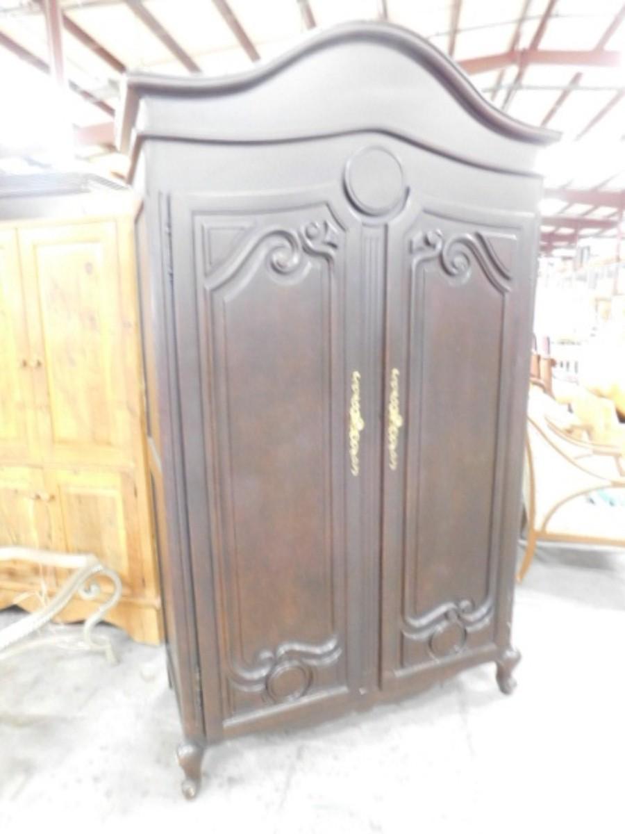 Double Door French Regency Design Armoire Media Center Mahogany Finish Choice A. Hinge is loose on one door.
