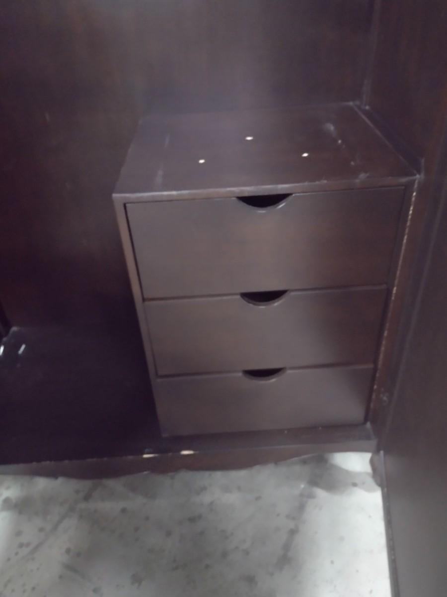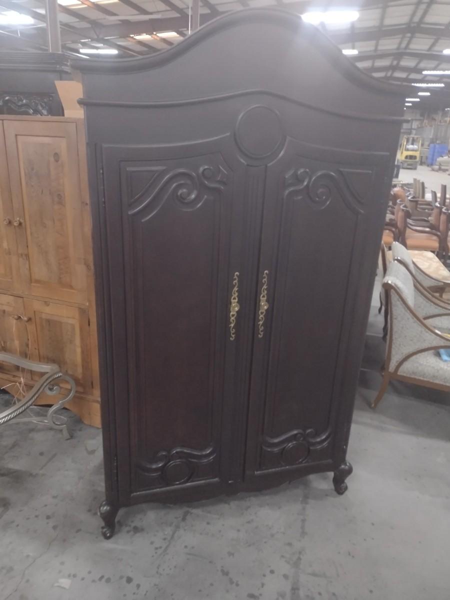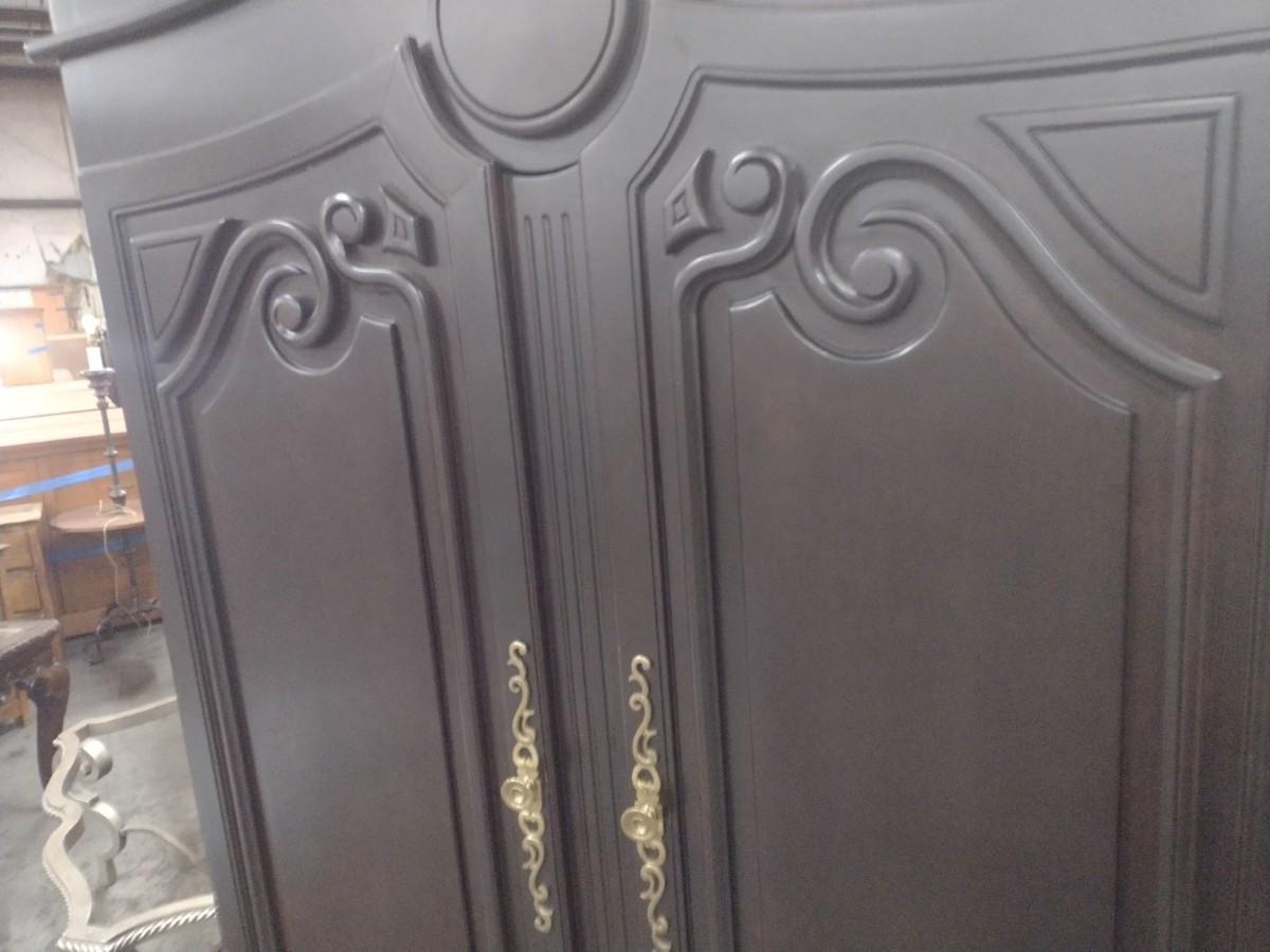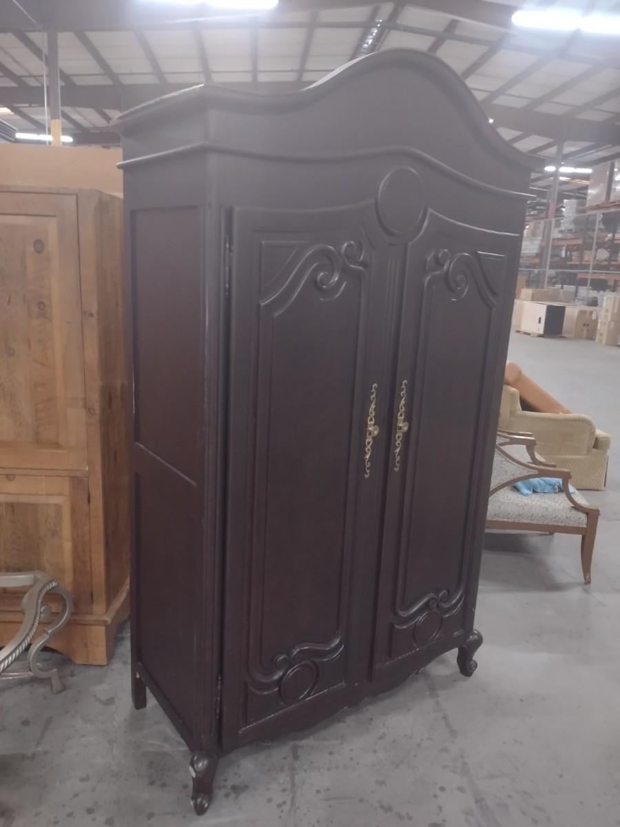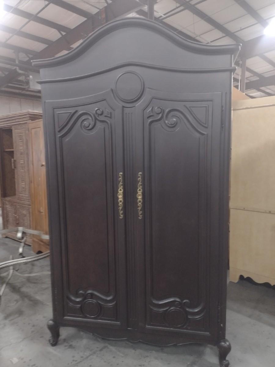 Double Door French Regency Design Armoire Media Center Mahogany Finish Choice B. Has some scrapes one side panel. Sweater drawers are damaged as shown. Expect some wear or scratches to the finish. Shipping option available via freight or local mover at Buyer's expense. Buyer must have all shipping scheduled within the stated dates and times of pickup. Recommended local mover is Beaty Bros. Moving 828-201-2982