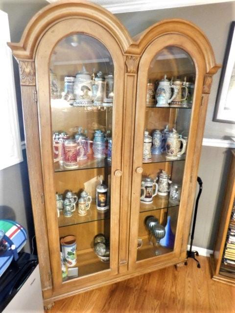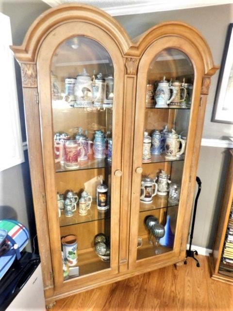Double Door Lighted Display Cabinet- Wood and Glass (Contents Not Included) - 52" x 15 1/2" x 84" main floor no stairs to driveway