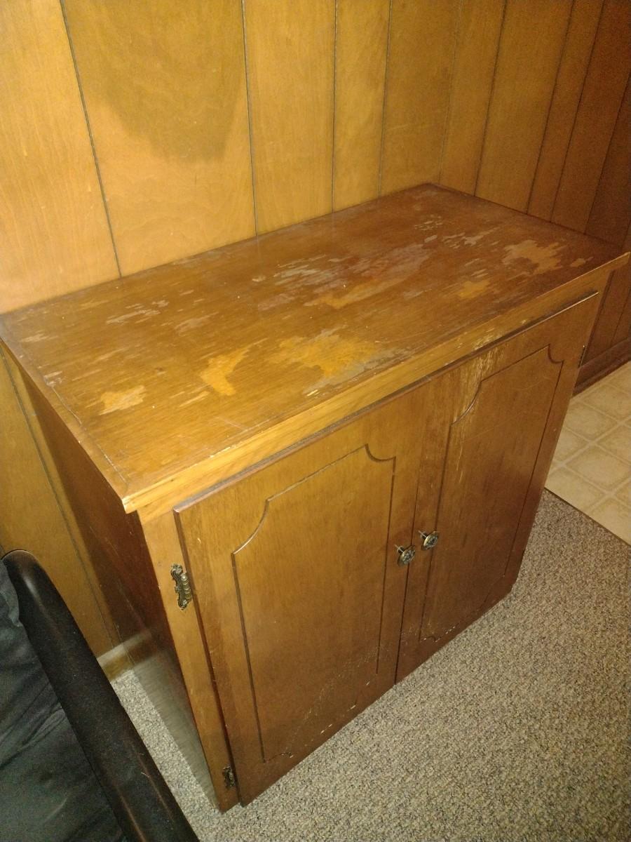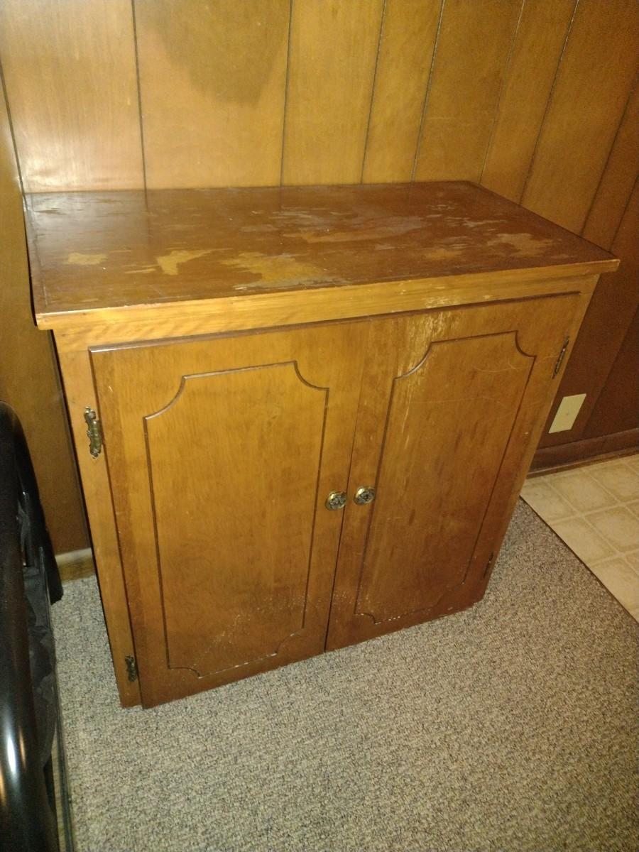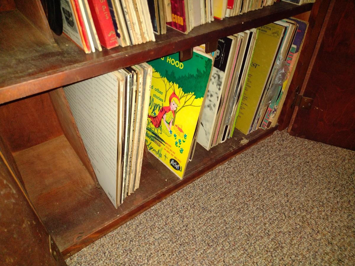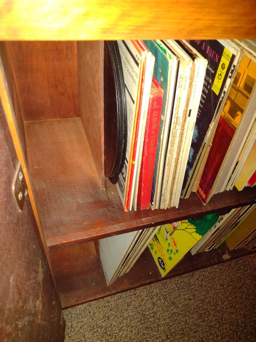 Double Door Wood Finish Vinyl Recor Storage Cabinet (No Content) Expect some wear and scratches to the finish as shown.