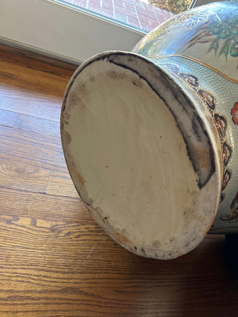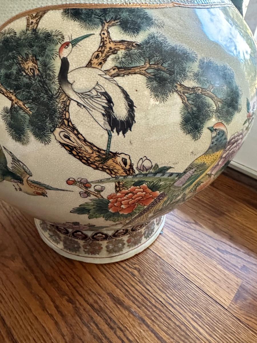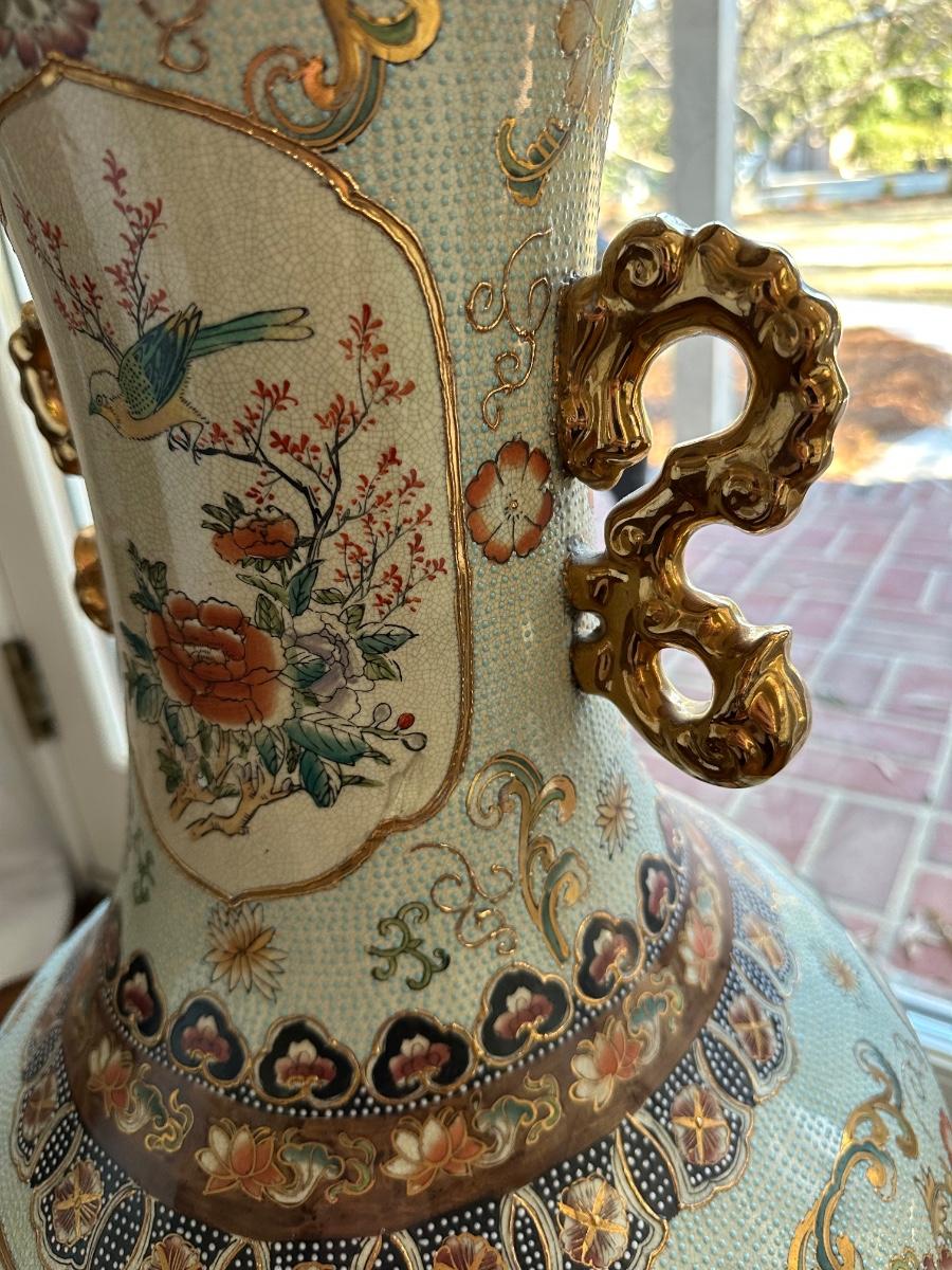 DOUBLE DRAGON HANDLE OVERSIZED ASIAN VASE BIRD DECORATED 28 1/2" TALL