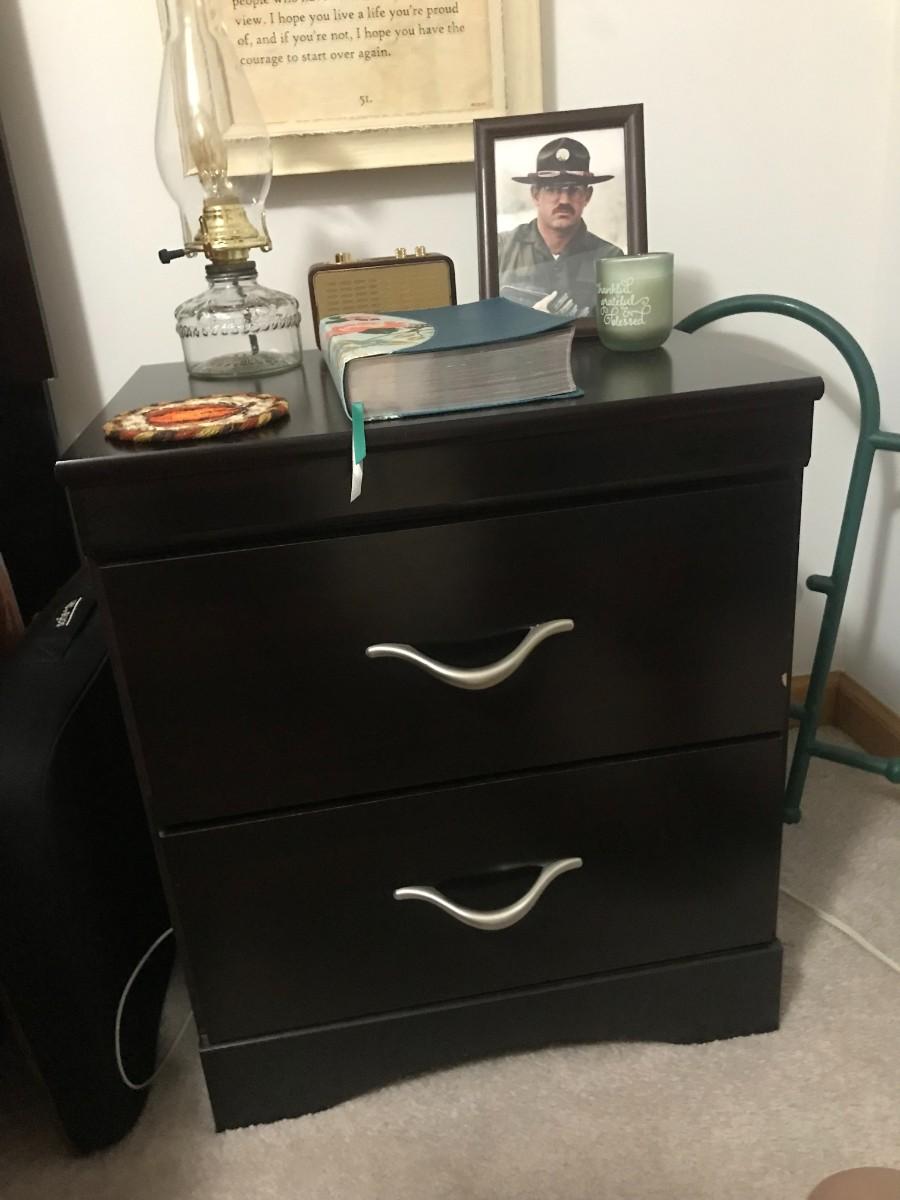 Double Drawer Bedside Dresser (No Contents) expect some wear or scratches to the surface. Upstairs item