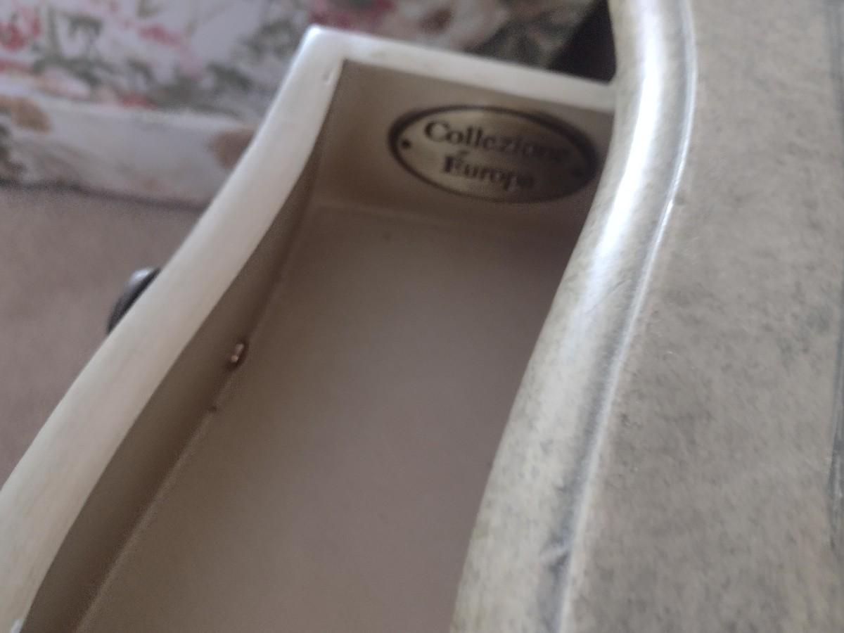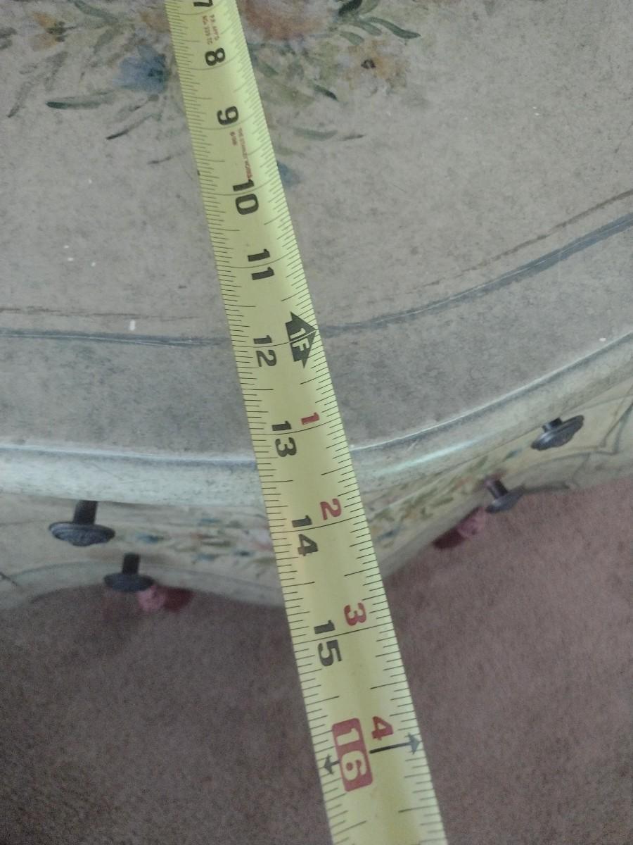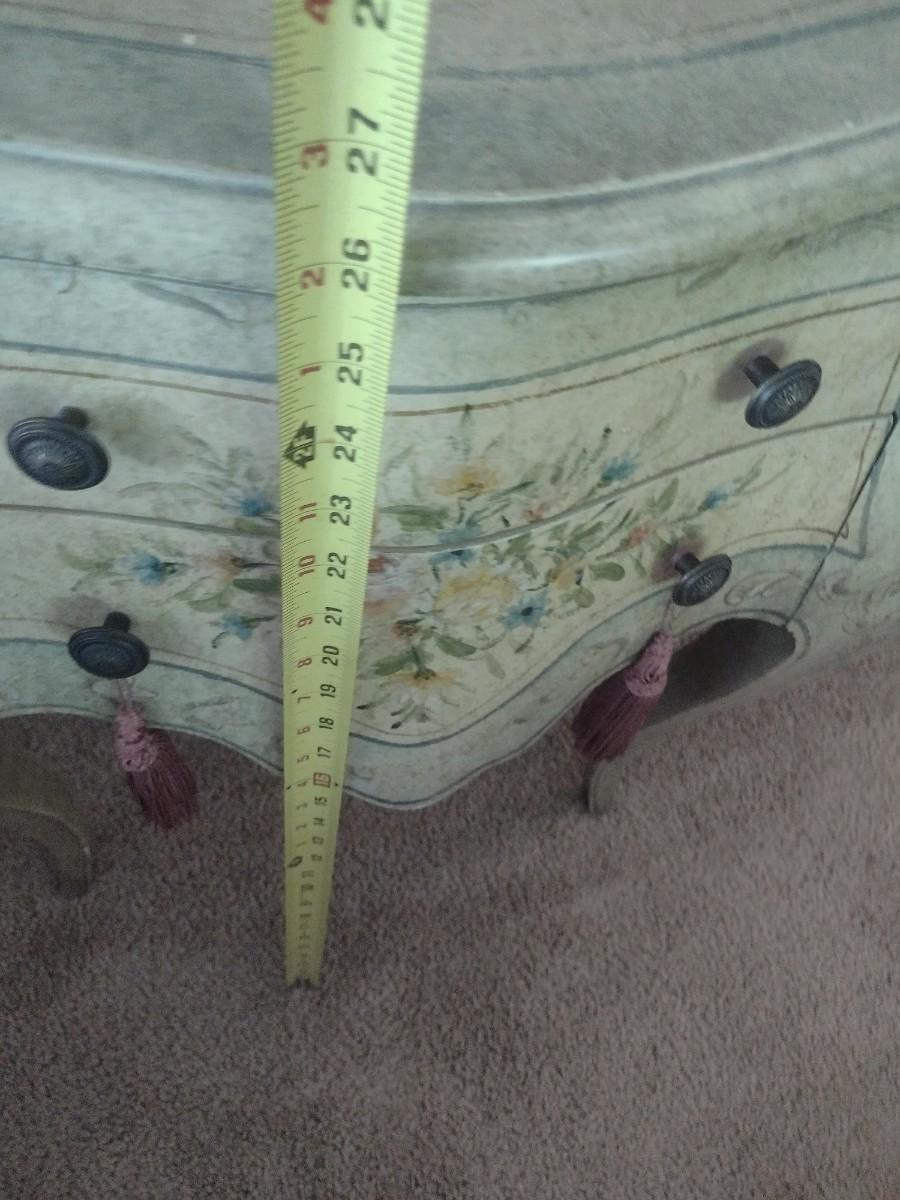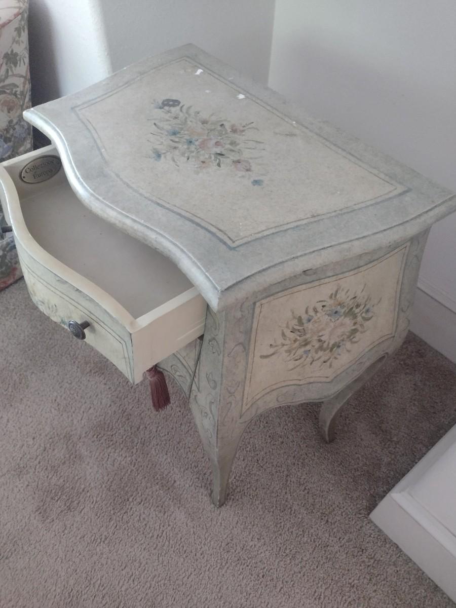 Double Drawer Bombay Painted Chest. Has a few places with loose paint as shown. Upstairs item