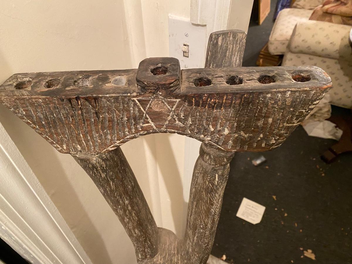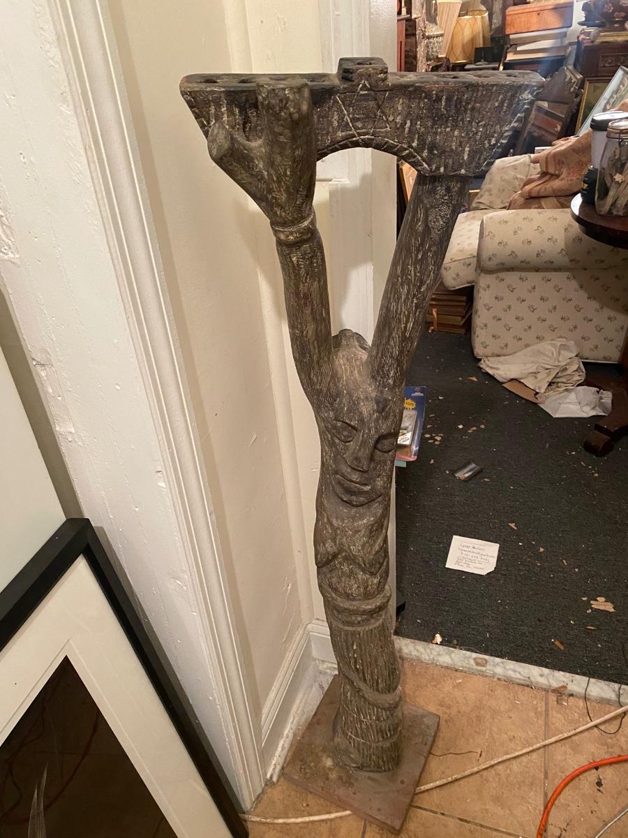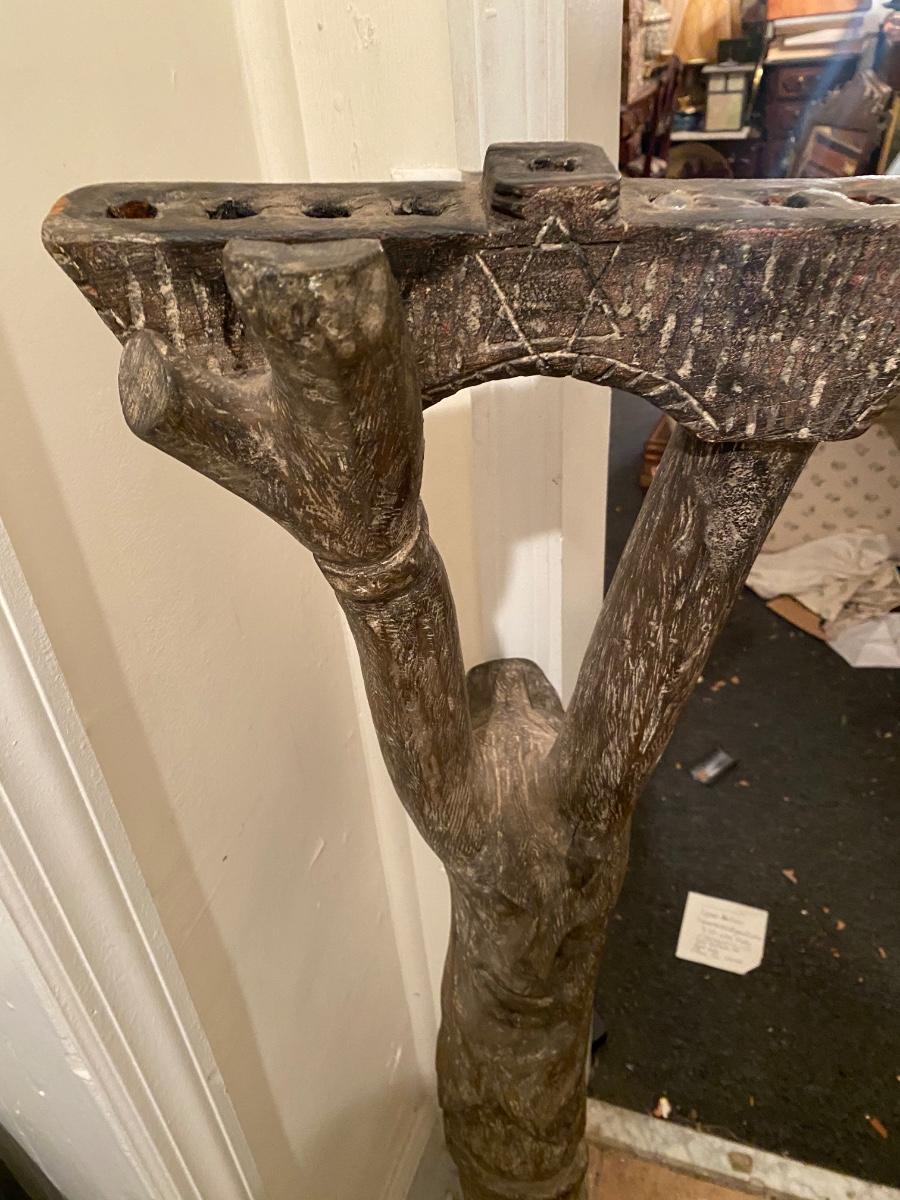 Unique art piece 46" high carved double faced standing on platform menorah. Display this all year long .Truly one of a kind!