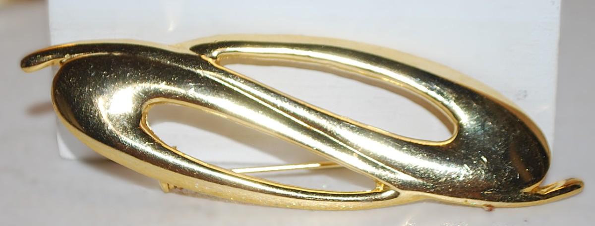 Double Gold Colored "Waves" BROOCH (3½" x 1") on a Gold Tone Setting