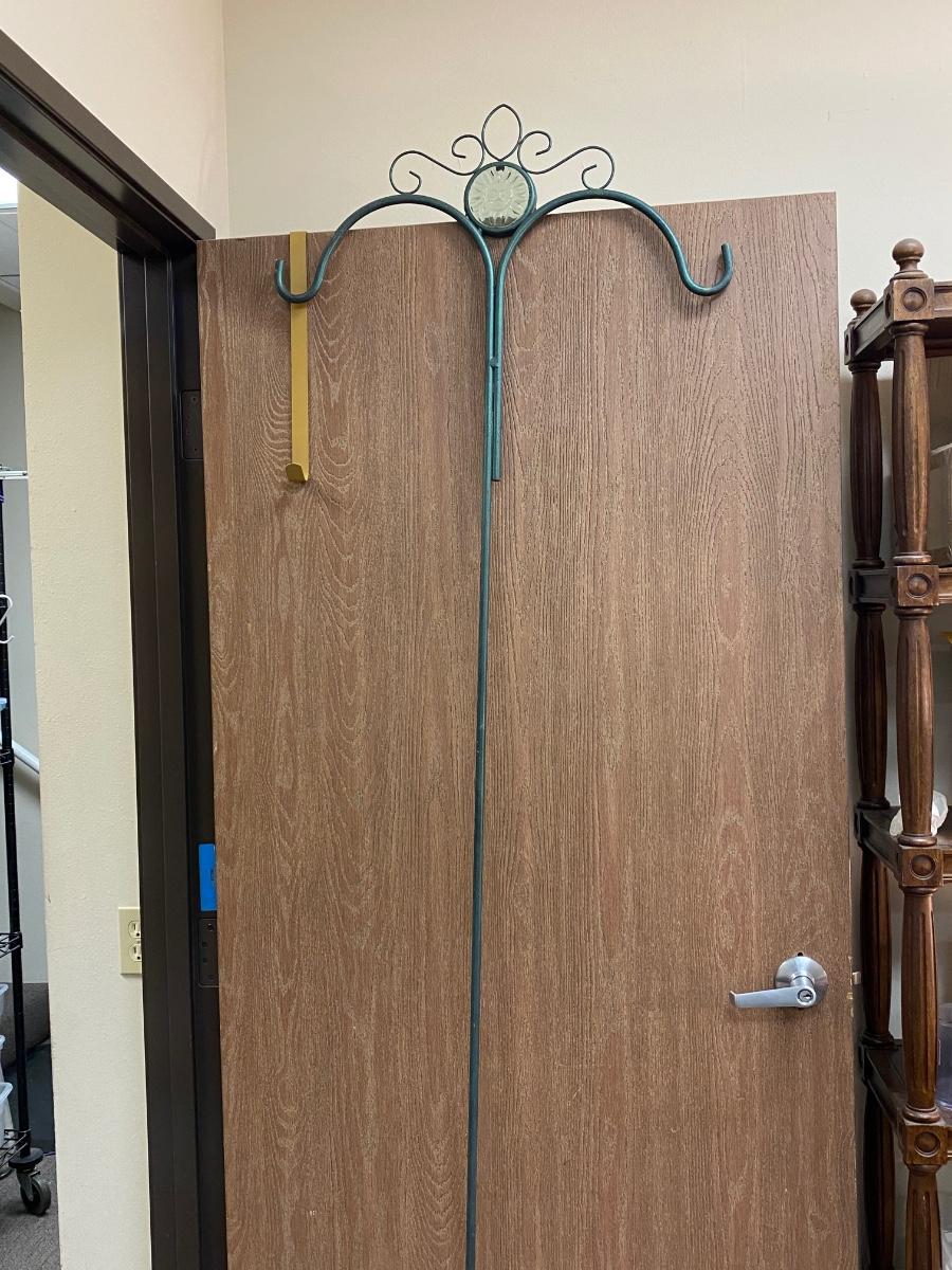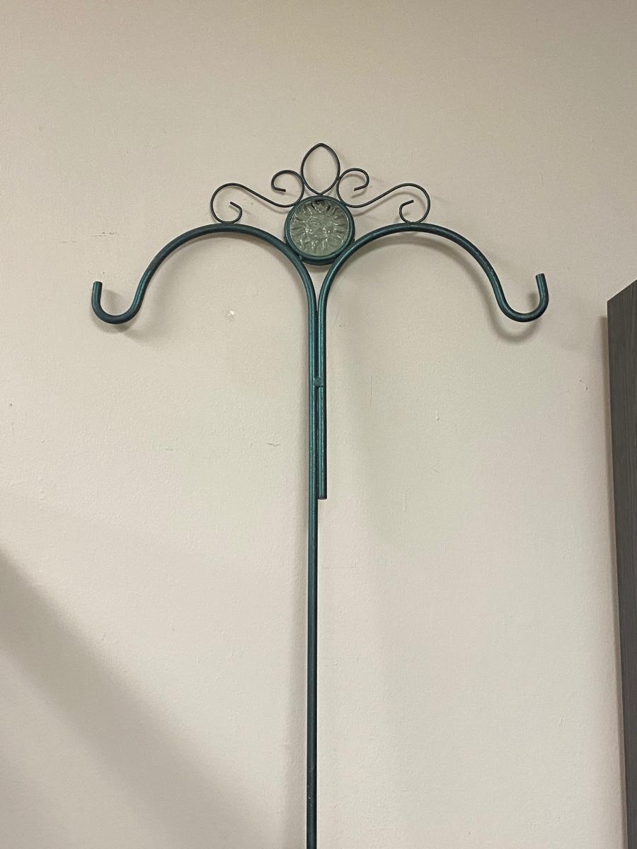 Double Hook Plant Hanger Shepherds Hook Garden Yard Decor. Over 7' tall. Bent end but would still work just fine.