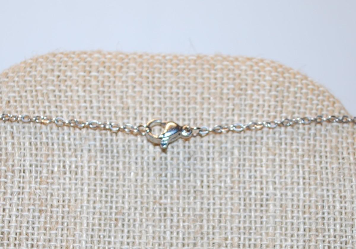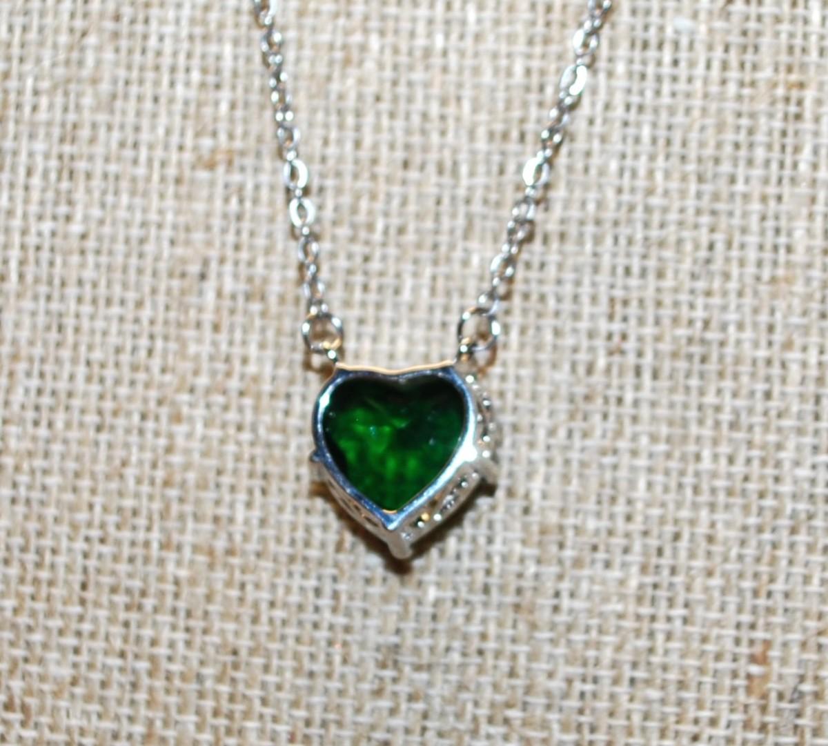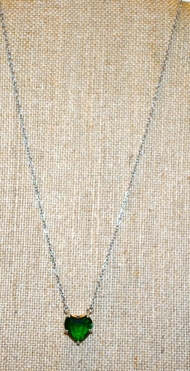Double Hooked Green HEART Stone PENDANT (½" x ½") on a Silver Tone Necklace Chain 18" L