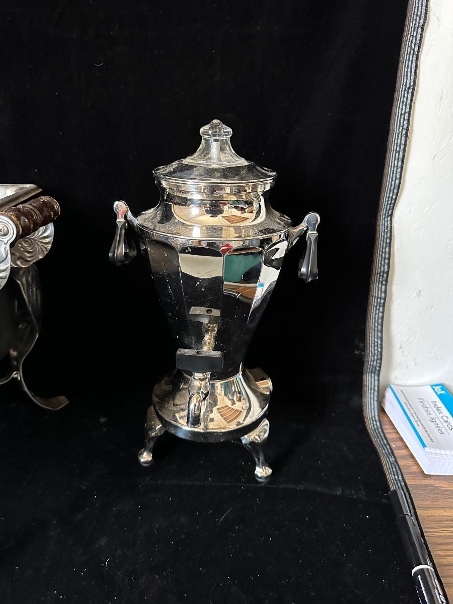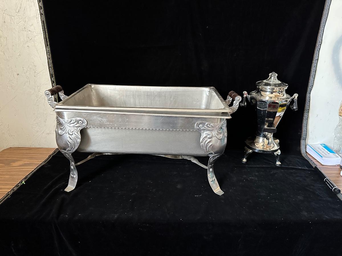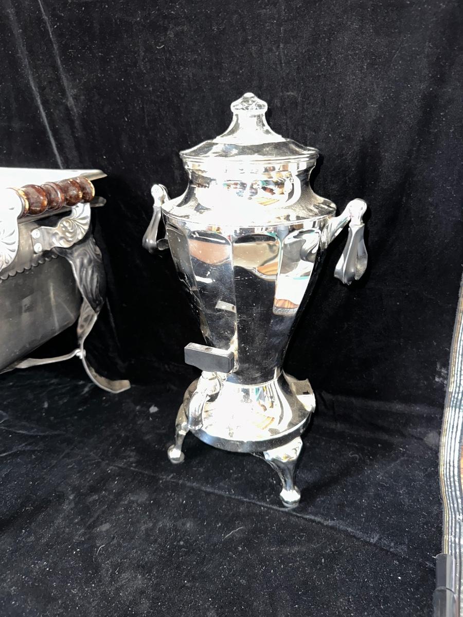 2 CHAFING DISHES AND ELECTRIC PERCOLATOR W/SPIGOT