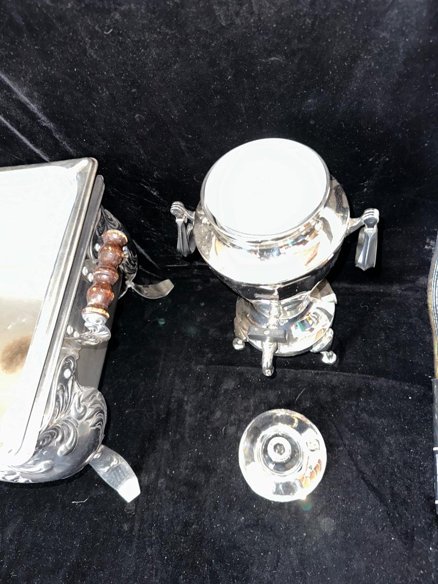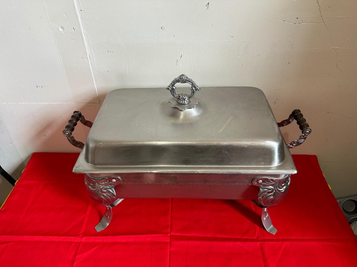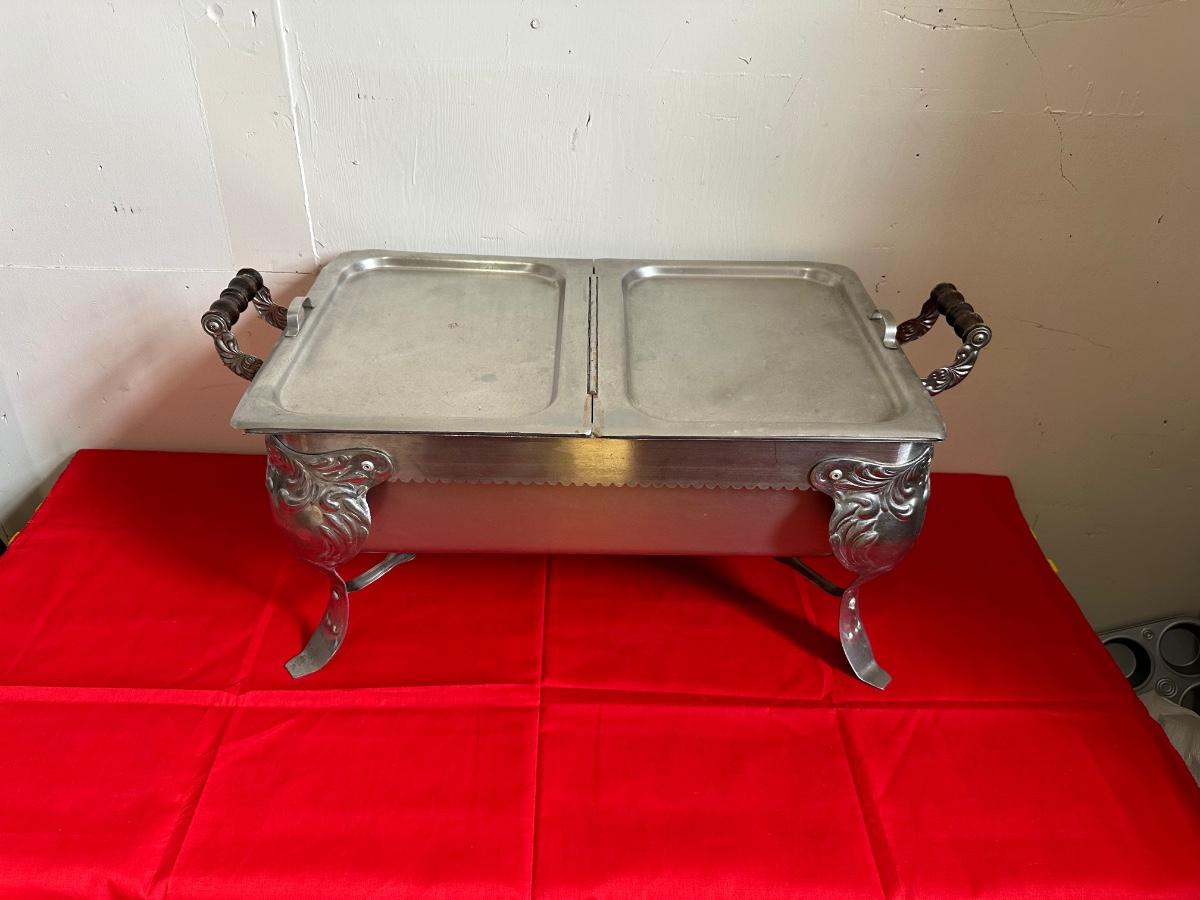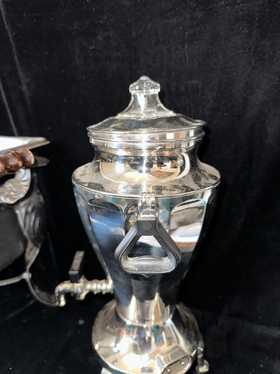 2 CHAFING DISHES AND ELECTRIC PERCOLATOR W/SPIGOT