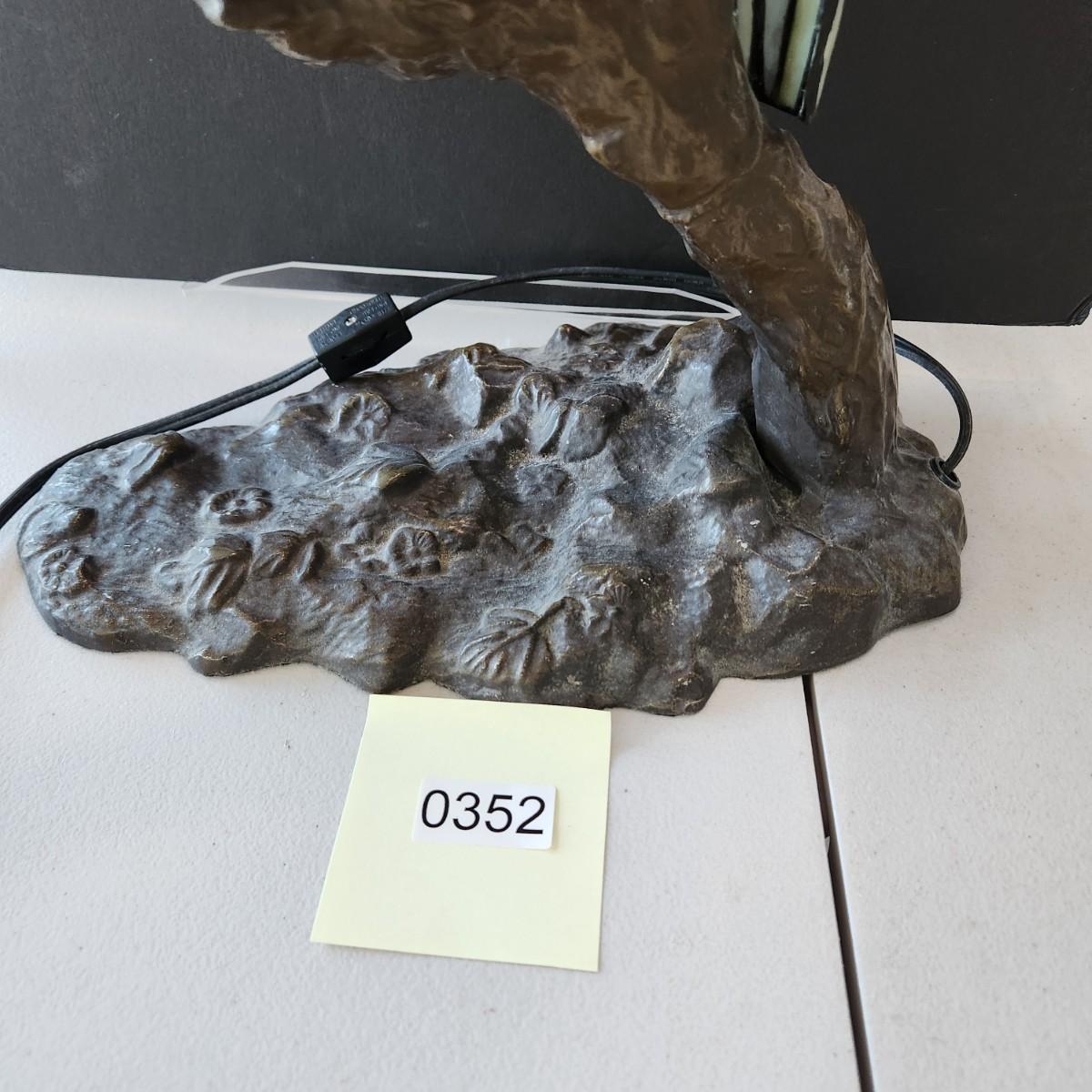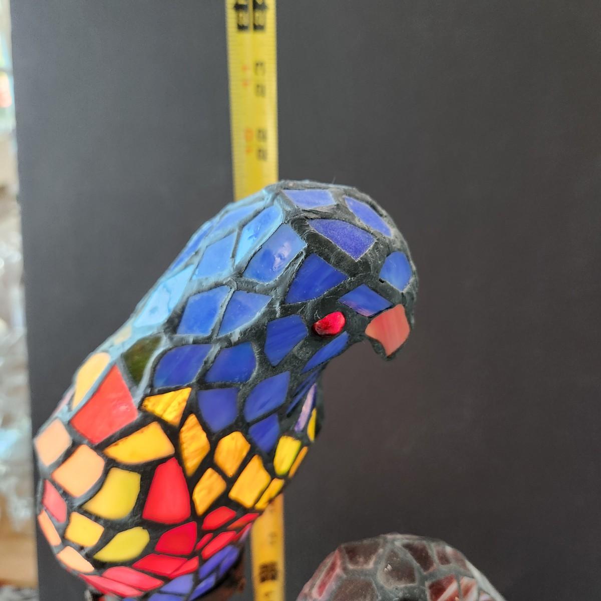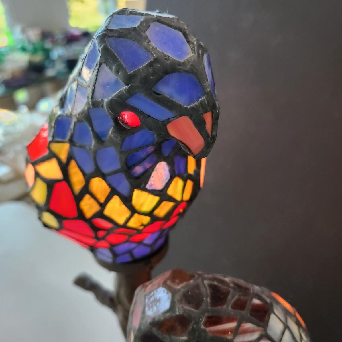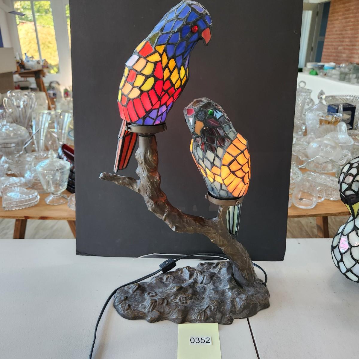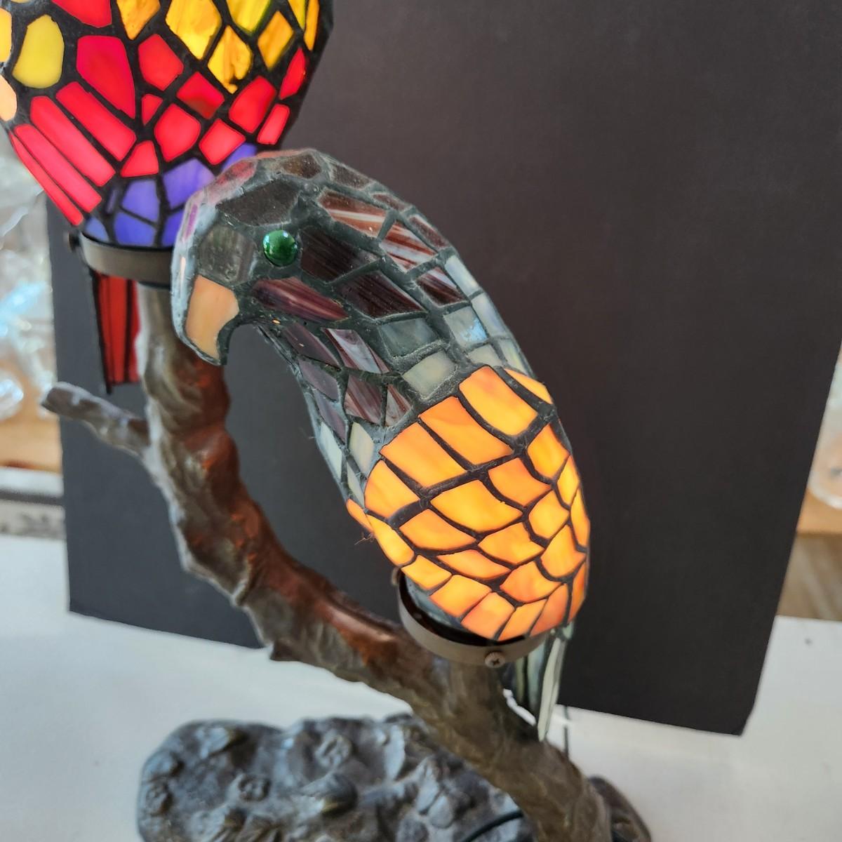 Double Parrot Stained Glass Table Lamp on Metal Branch