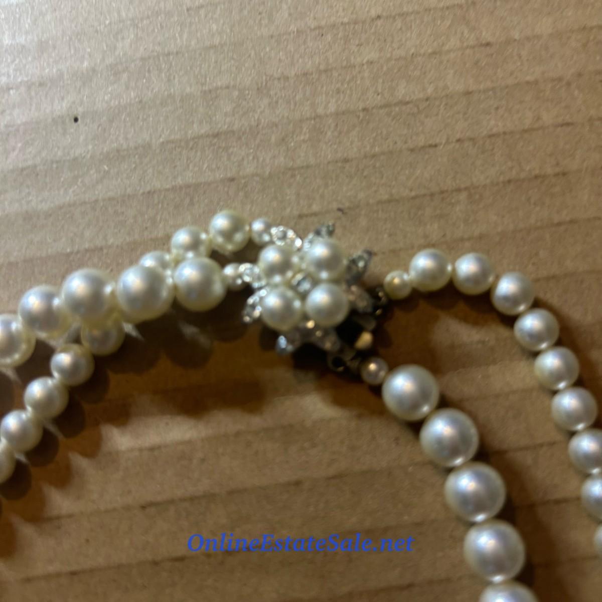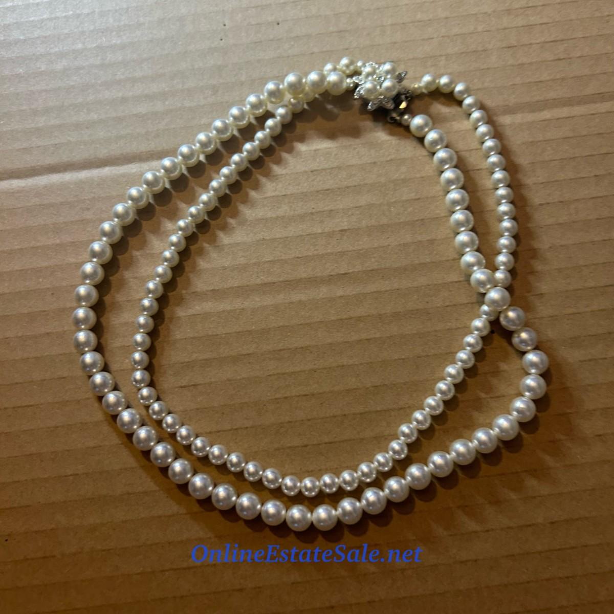 16in Double Strand Pearl Necklace with Detailed Box Clasp