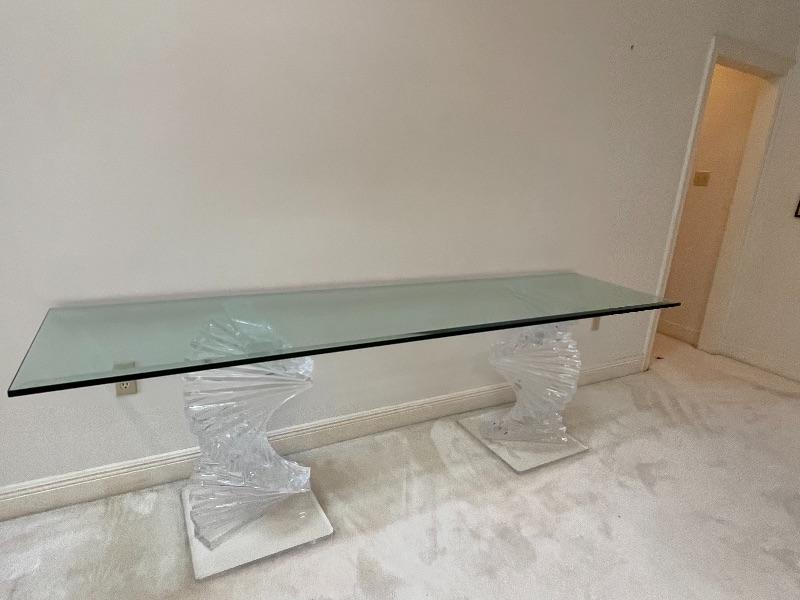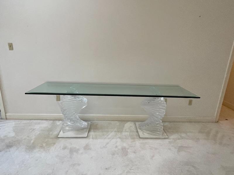 Sleek Double Pedestal Acrylic and Glass  Entry Table