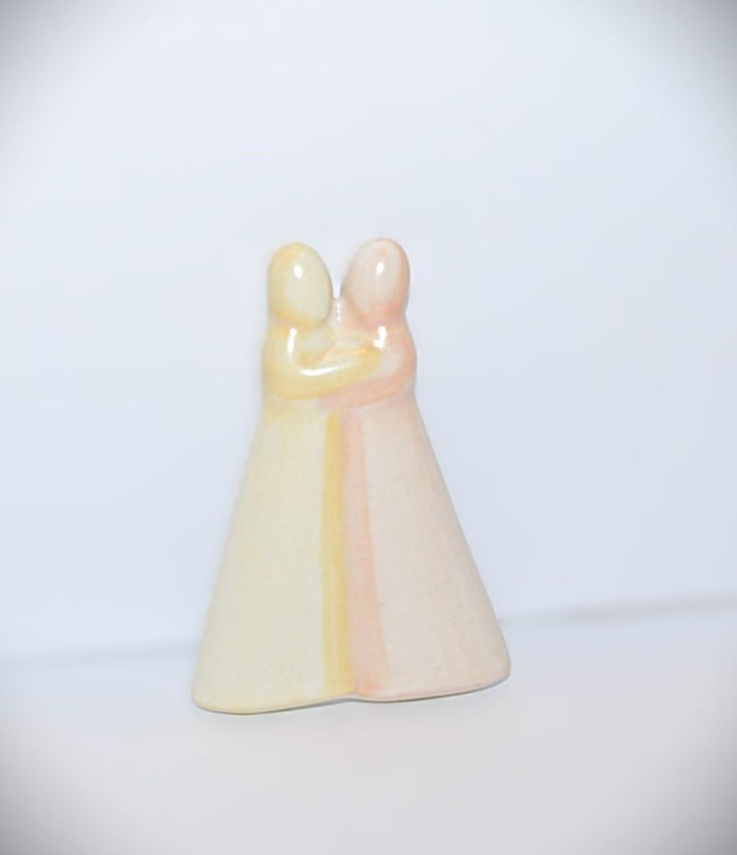 Double Pink & Yellow "Hugging Children" BROOCH (1¾" x 1¼") with Silver Tone Pin