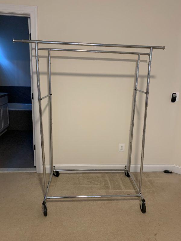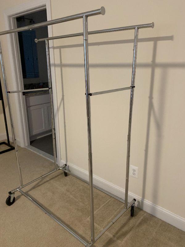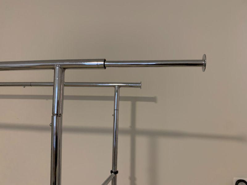 Clothing hanger with two racks for clothes. Ends extend 12" each as pictured.