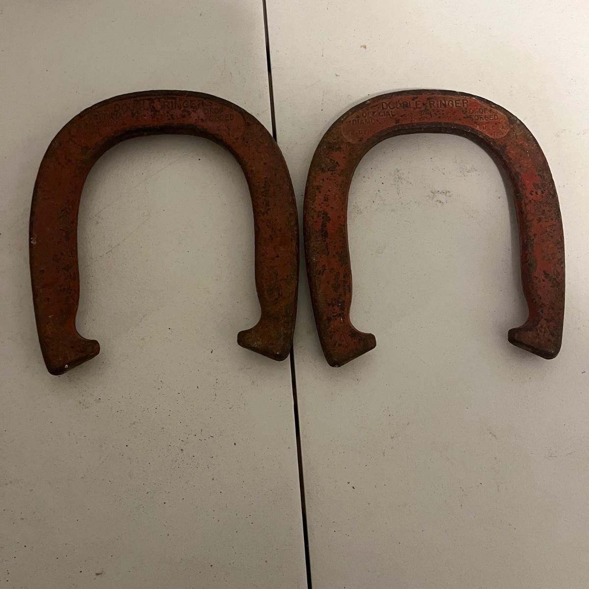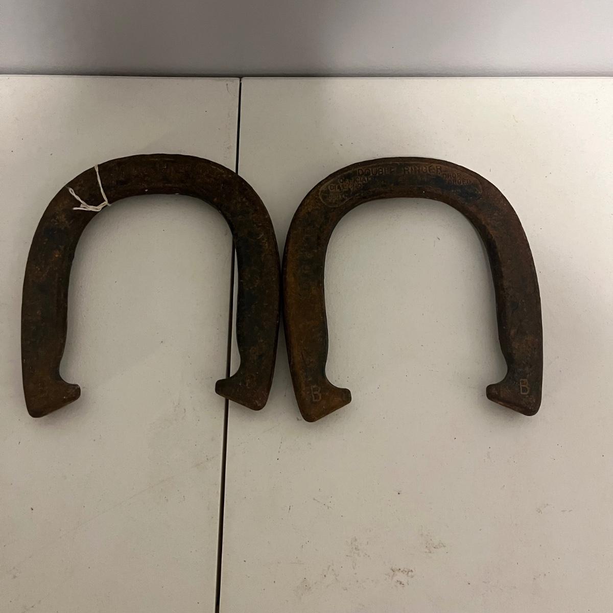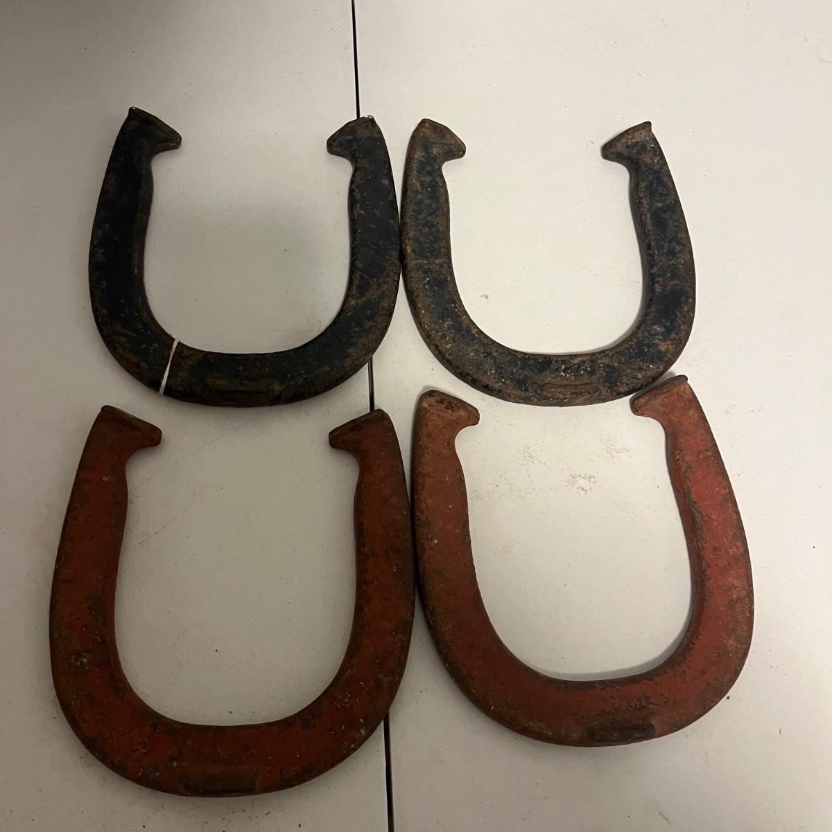 Lot includes four Double Ringer horse shoes that measure 2” x 7” x 7”H.