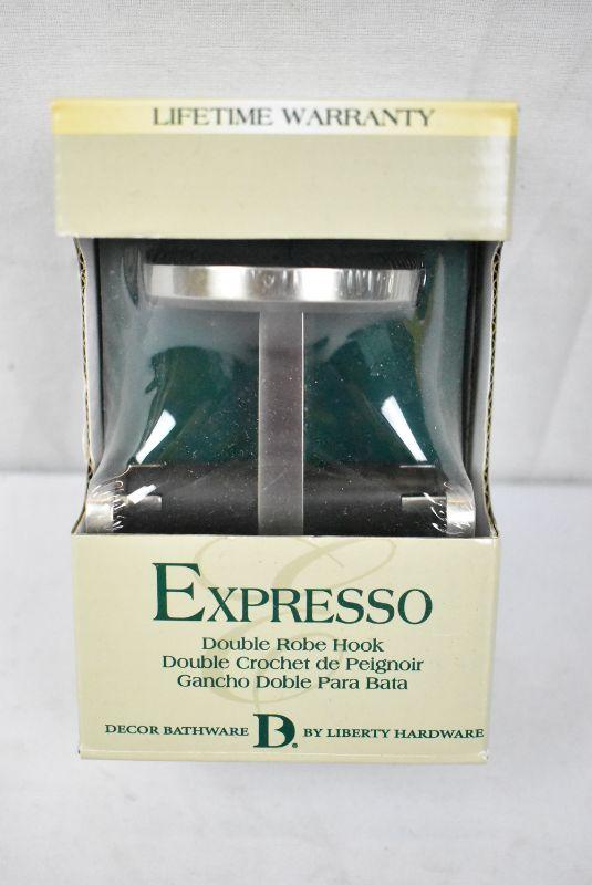 Double Robe Hook by Liberty Hardware. Espresso & Satin Nickel - New