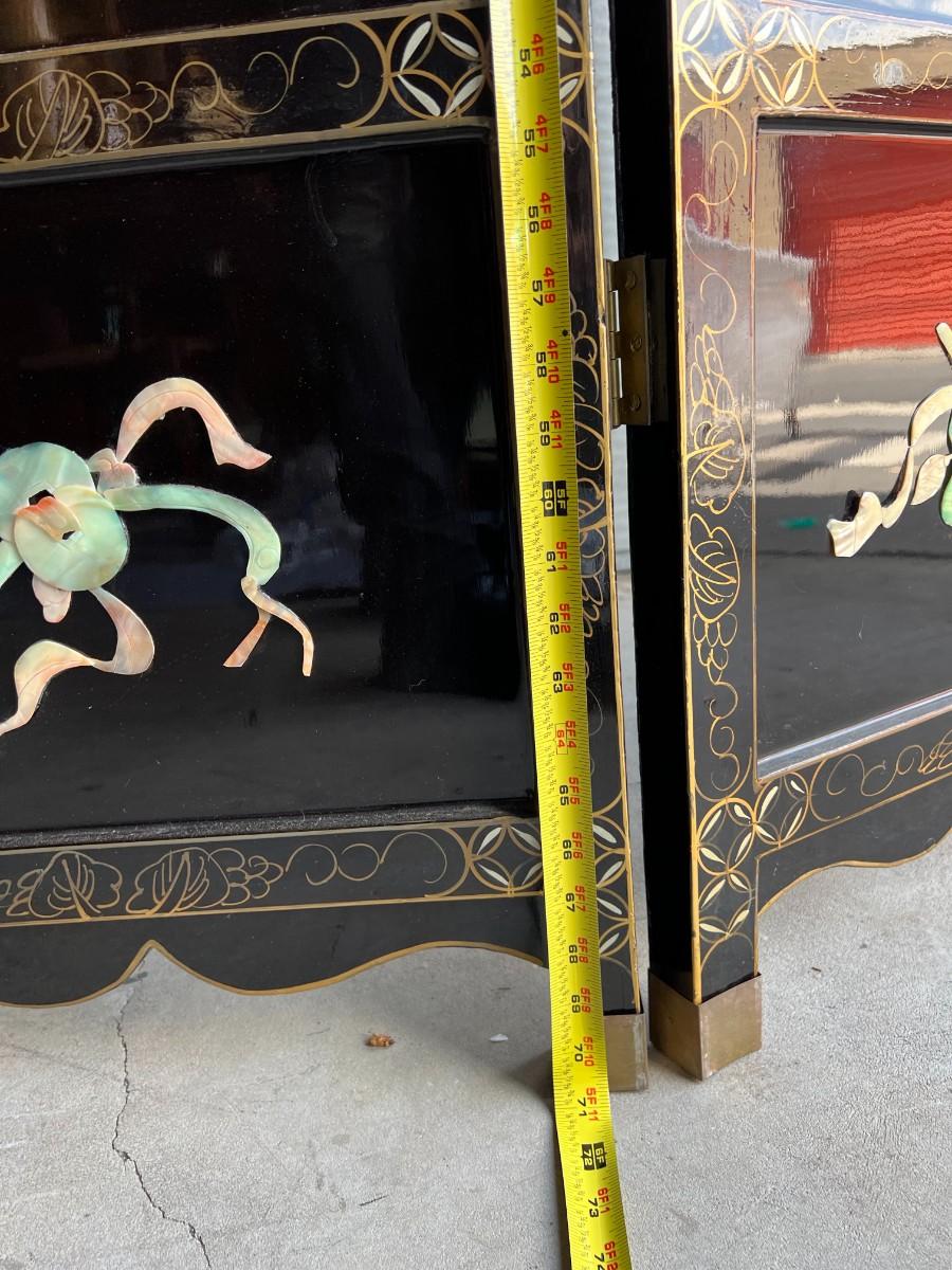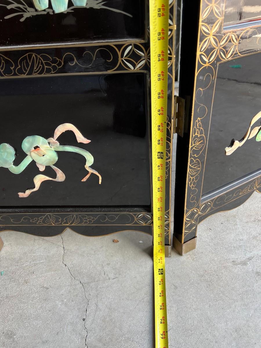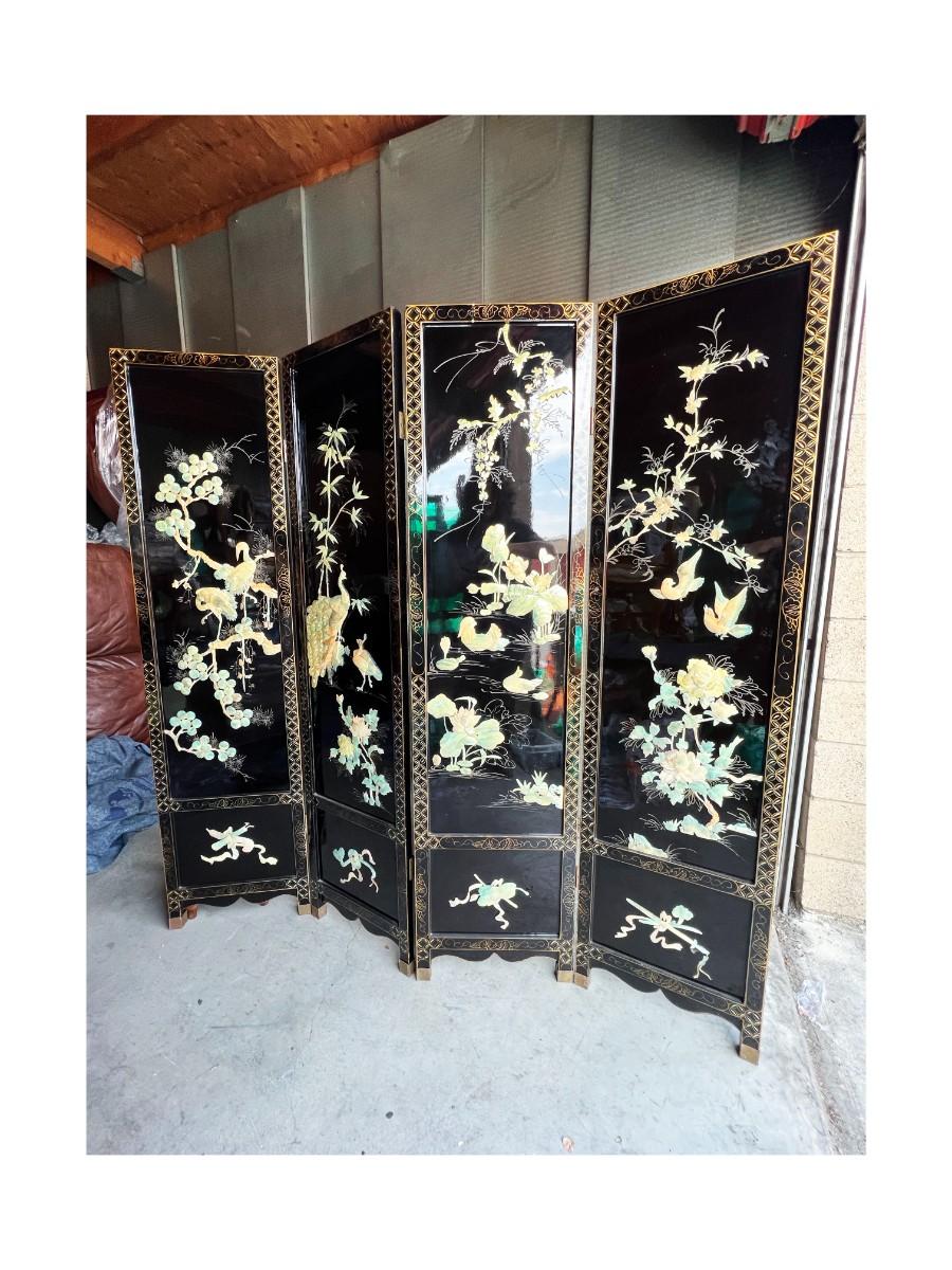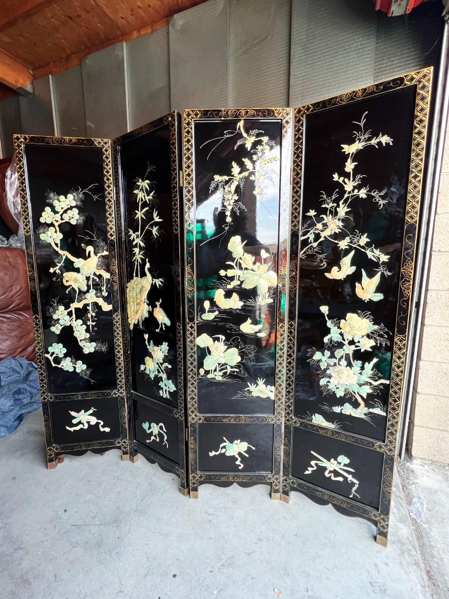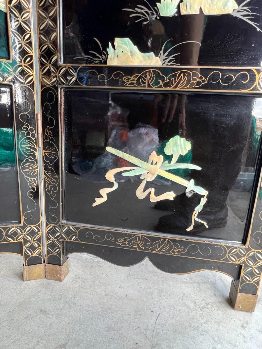 Double Sided 4 Panel Black Lacquered Abalone Mother of Pearl Coromandel Oriental Asian Styled Divider