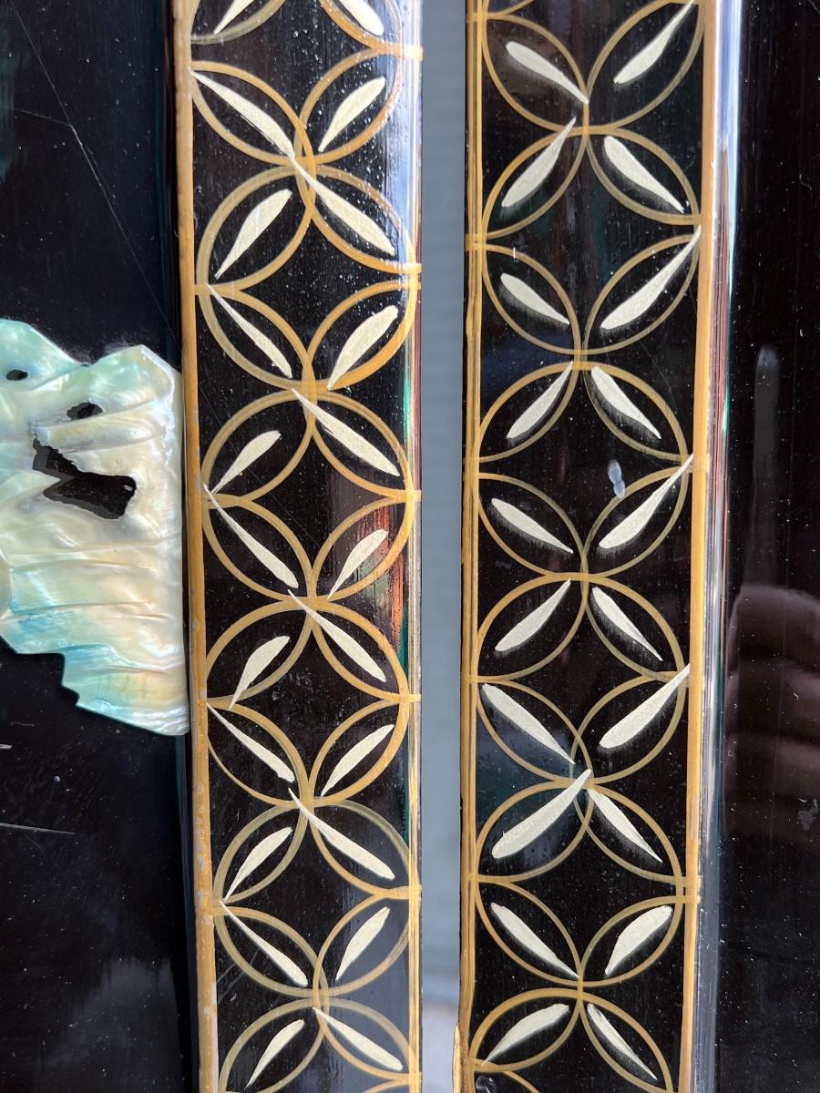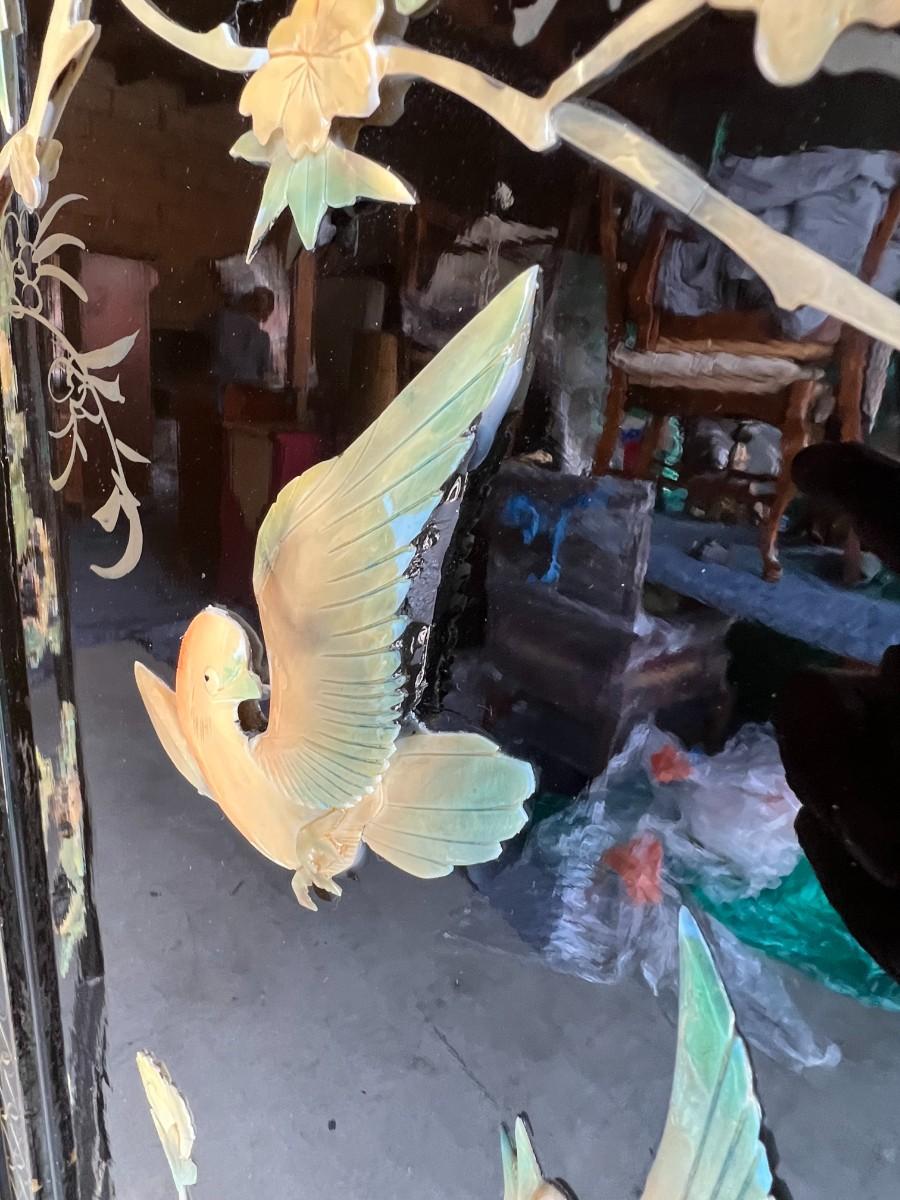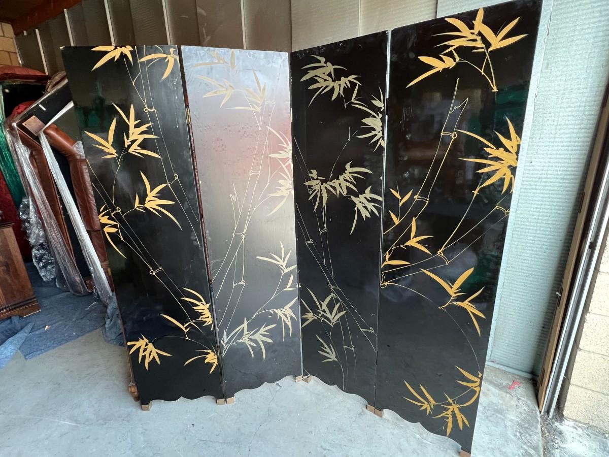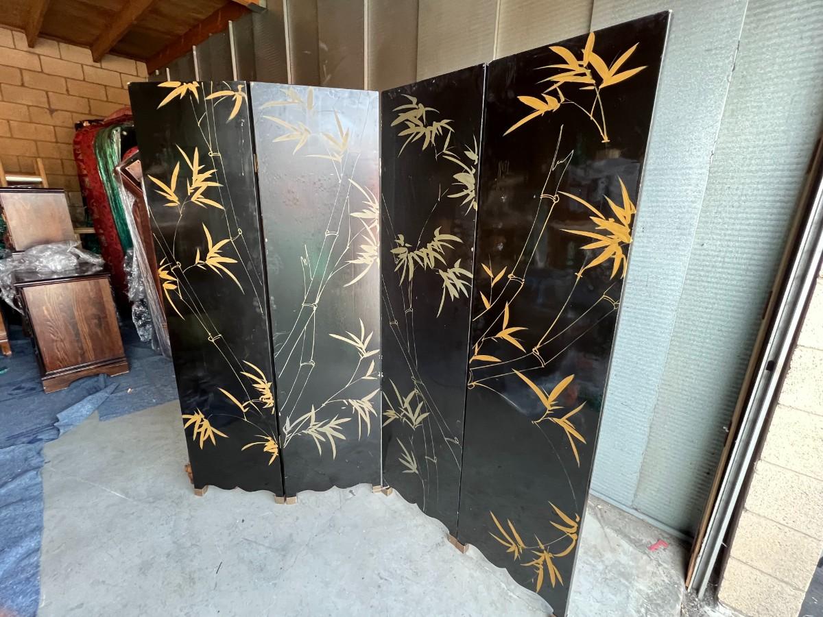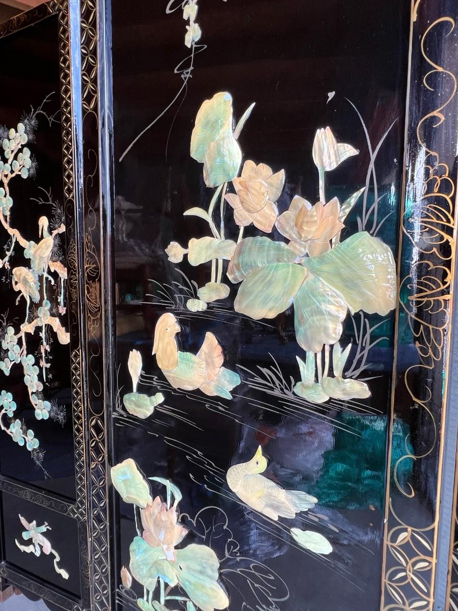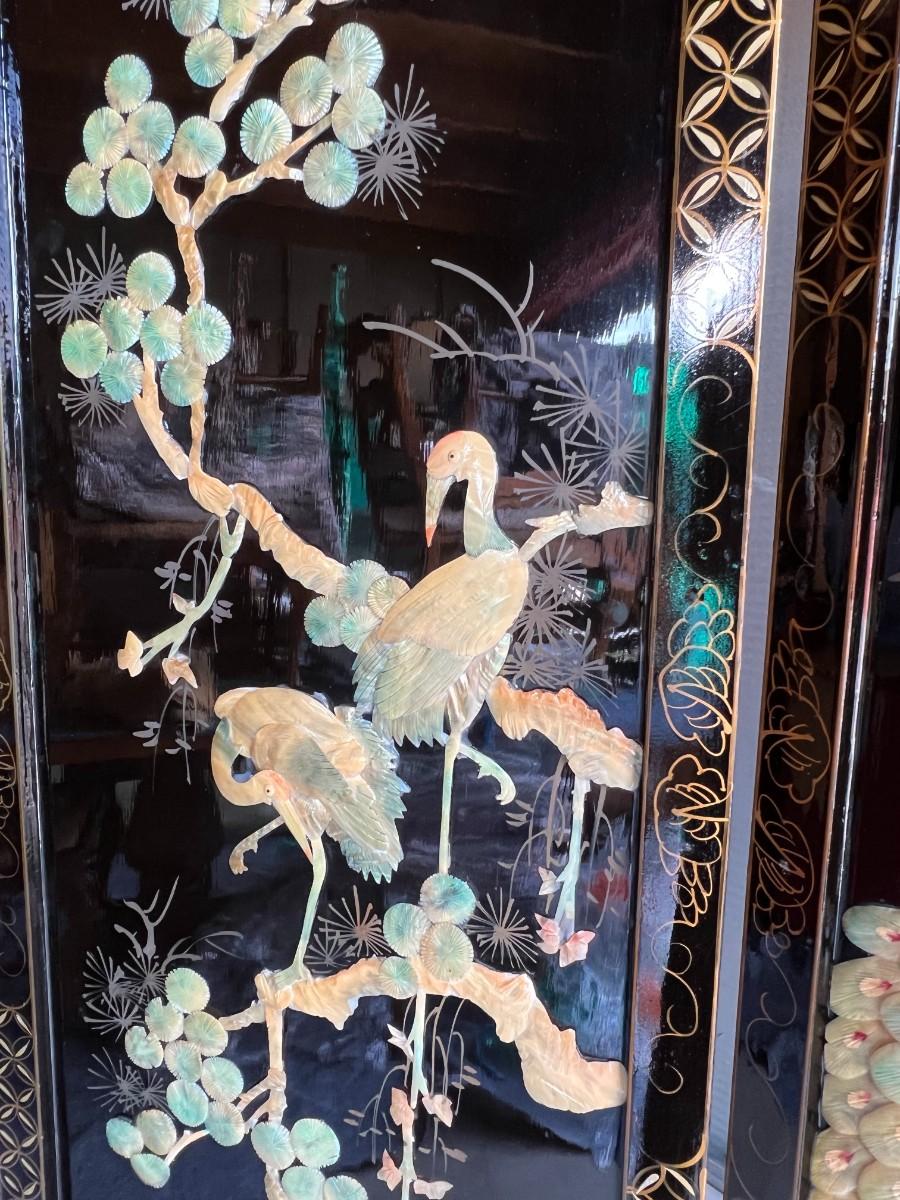 Double Sided 4 Panel Black Lacquered Abalone Mother of Pearl Coromandel Oriental Asian Styled Divider