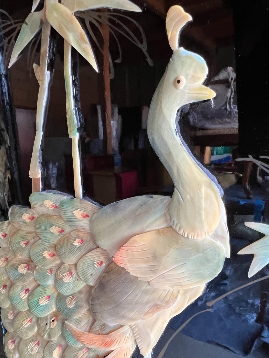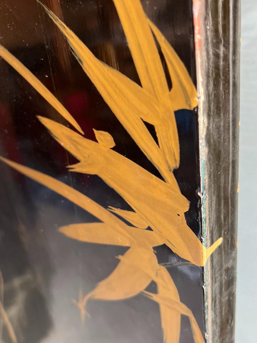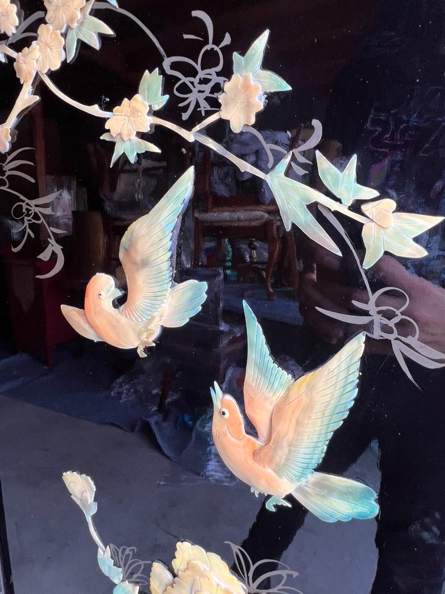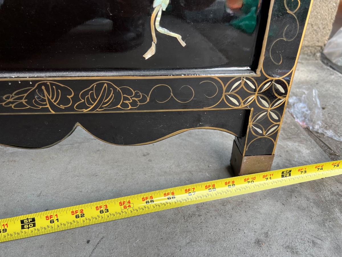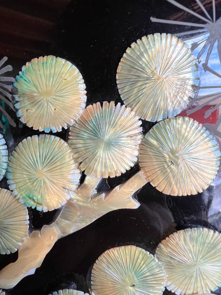 Double Sided 4 Panel Black Lacquered Abalone Mother of Pearl Coromandel Oriental Asian Styled Divider