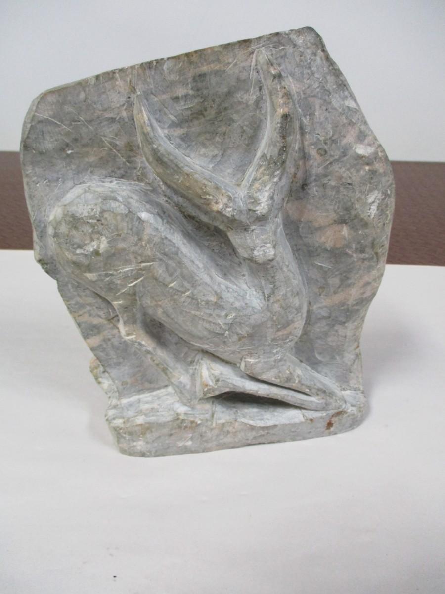 Tribal Art Double Sided Carved Stone Deer/Antelope