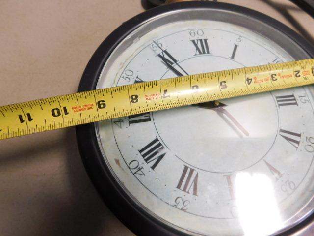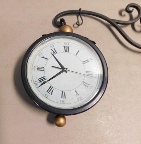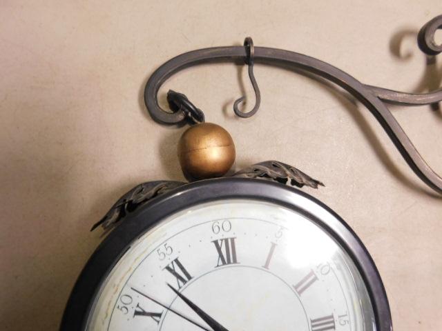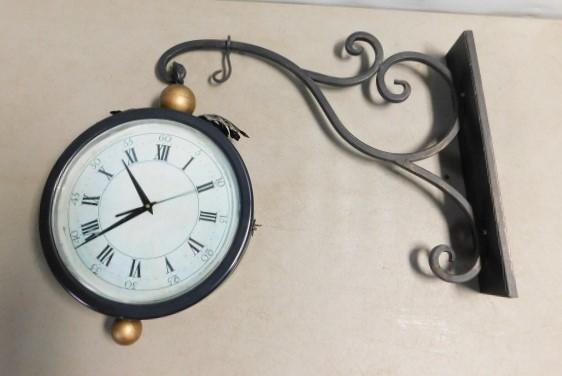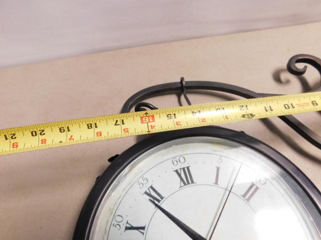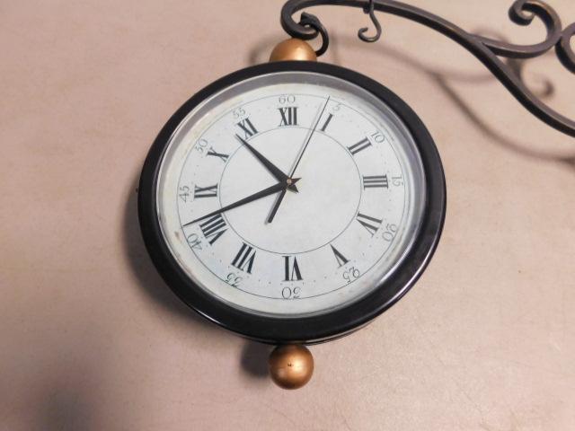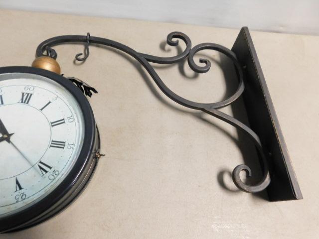 Double Sided Clock with Wrought Iron Blade Arm Wall Mount