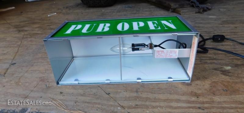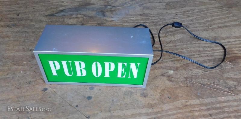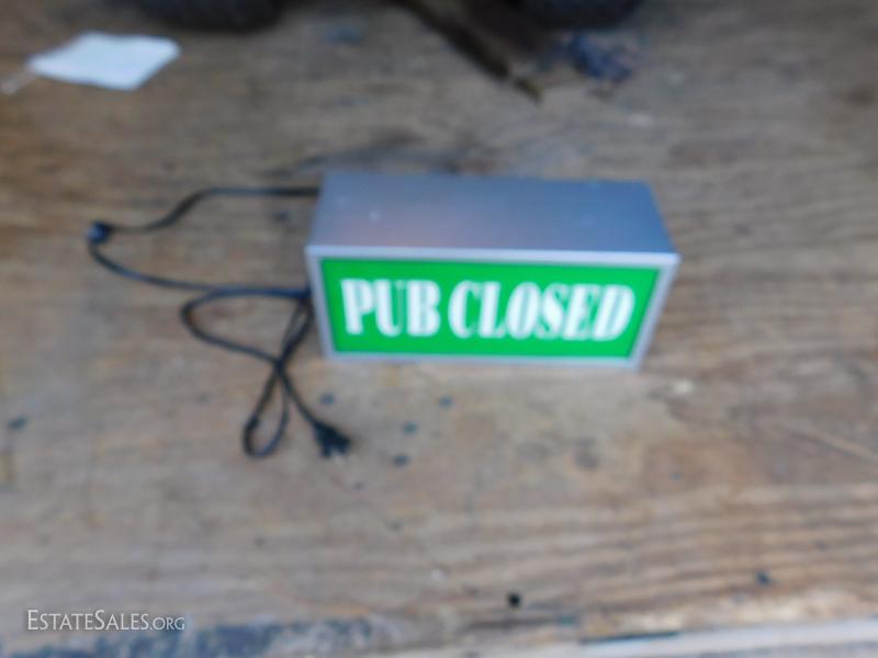 Double Sided Pub Sign with one side closed the other open.