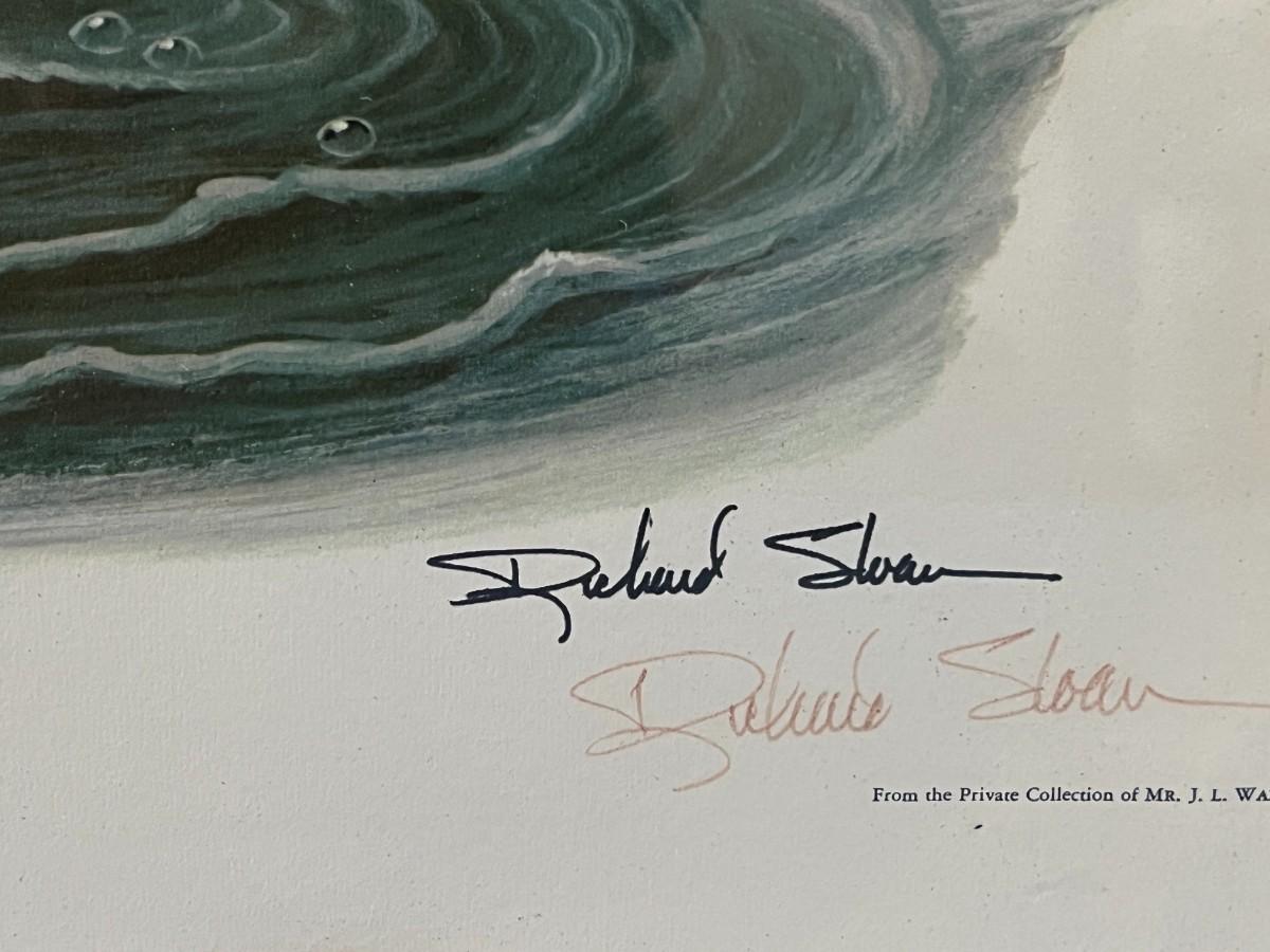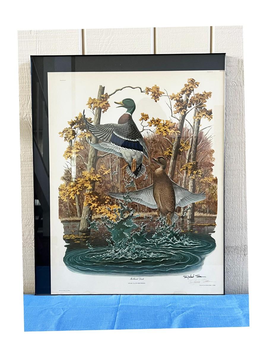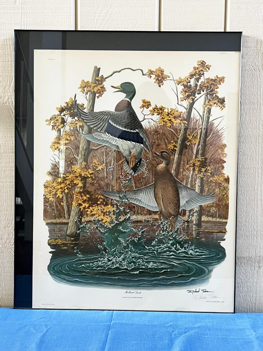Double Signed Richard Sloan Lithograph Plate Print Mallard Duck. Good condition. Needs to be recentered in frame.