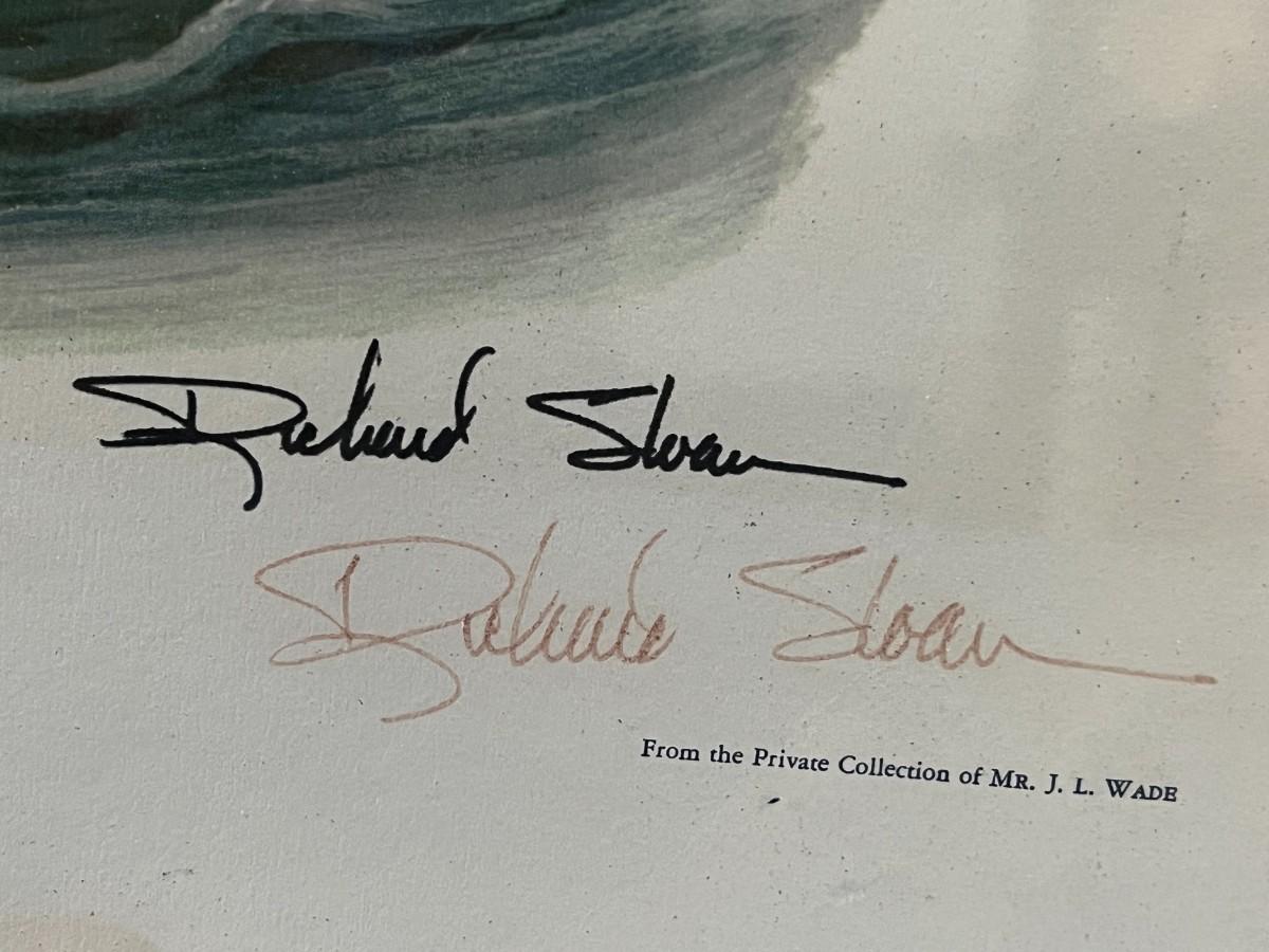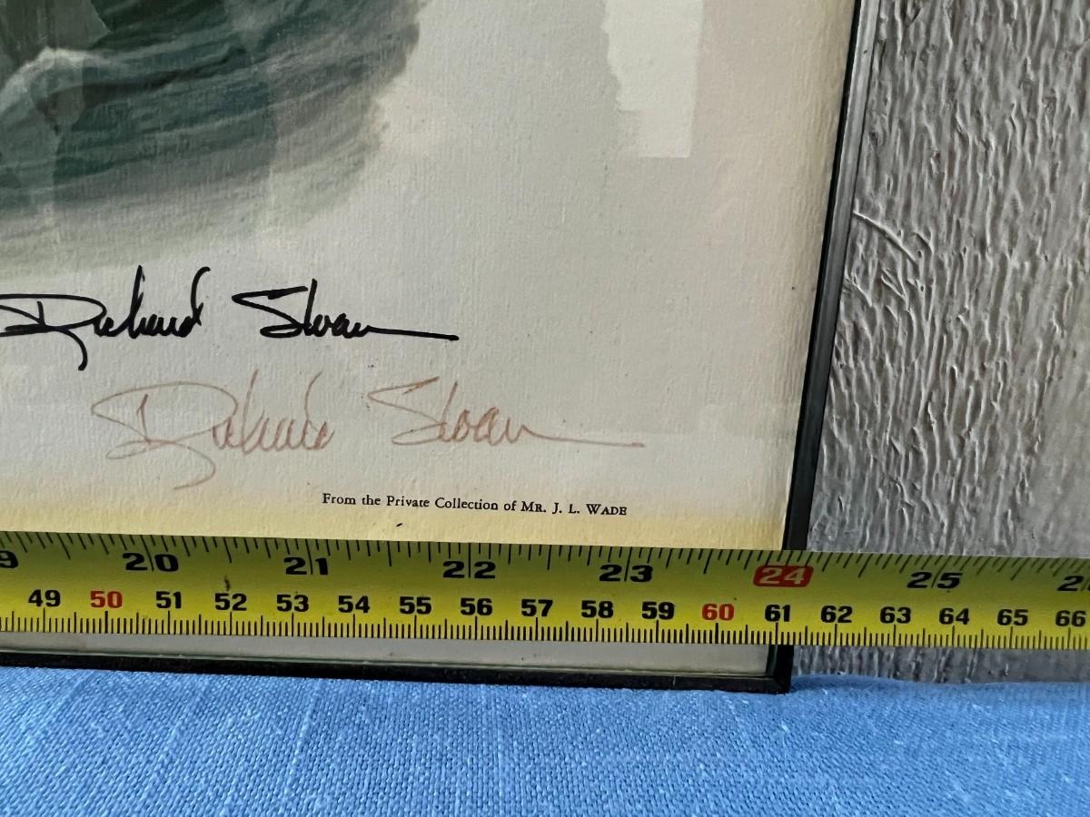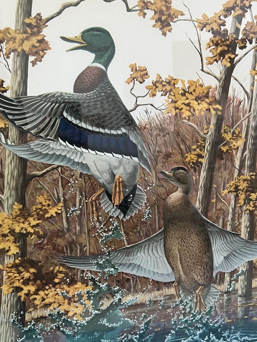 Double Signed Richard Sloan Lithograph Plate Print Mallard Duck. Good condition. Needs to be recentered in frame.
