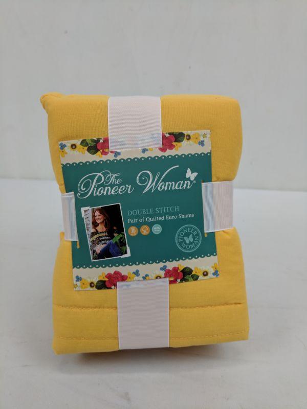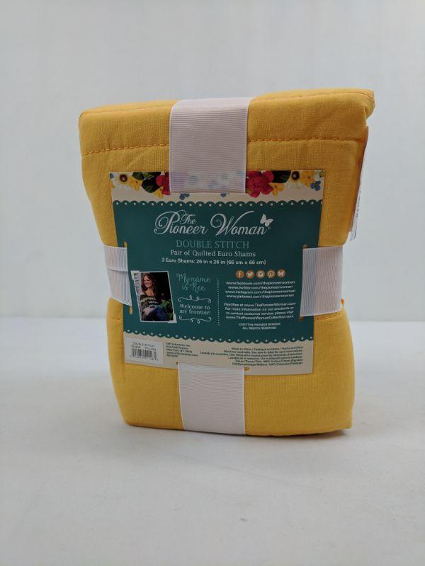 Double Stitch Yellow Pair of Quilted Euro Shams, The Pioneer Woman - New
