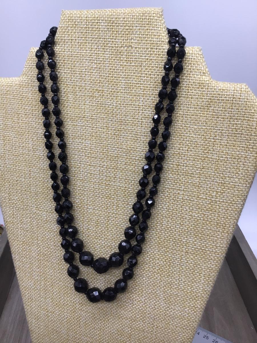 Double Strand Black Facetted Glass Vintage