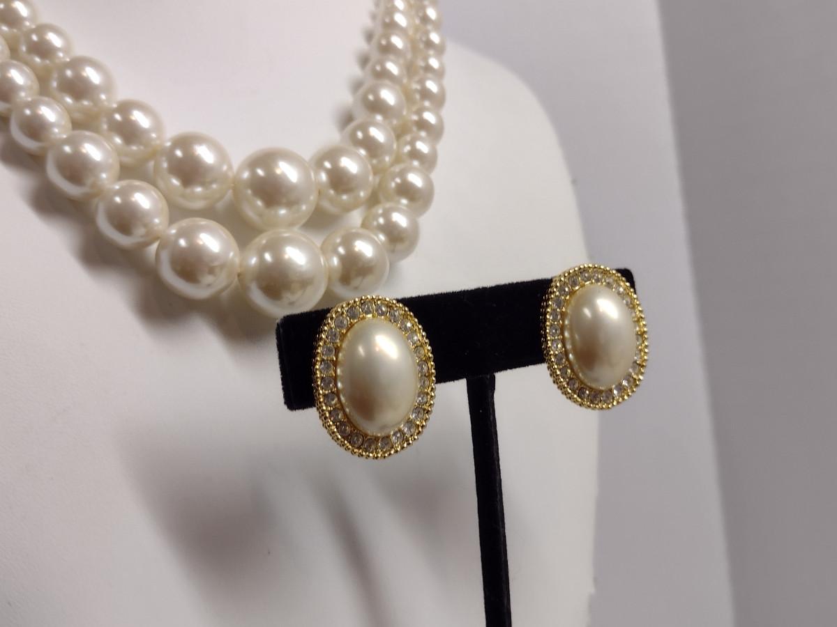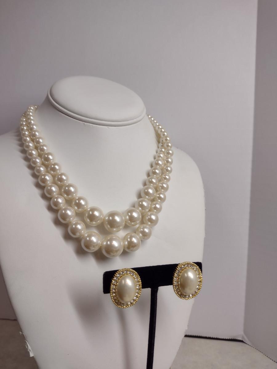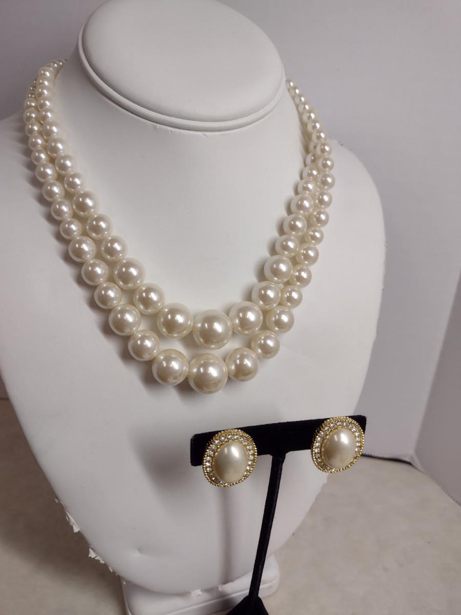 Double Strand Faux Pearl Necklace and Earring Set (#33). Earrings are clip-on.
