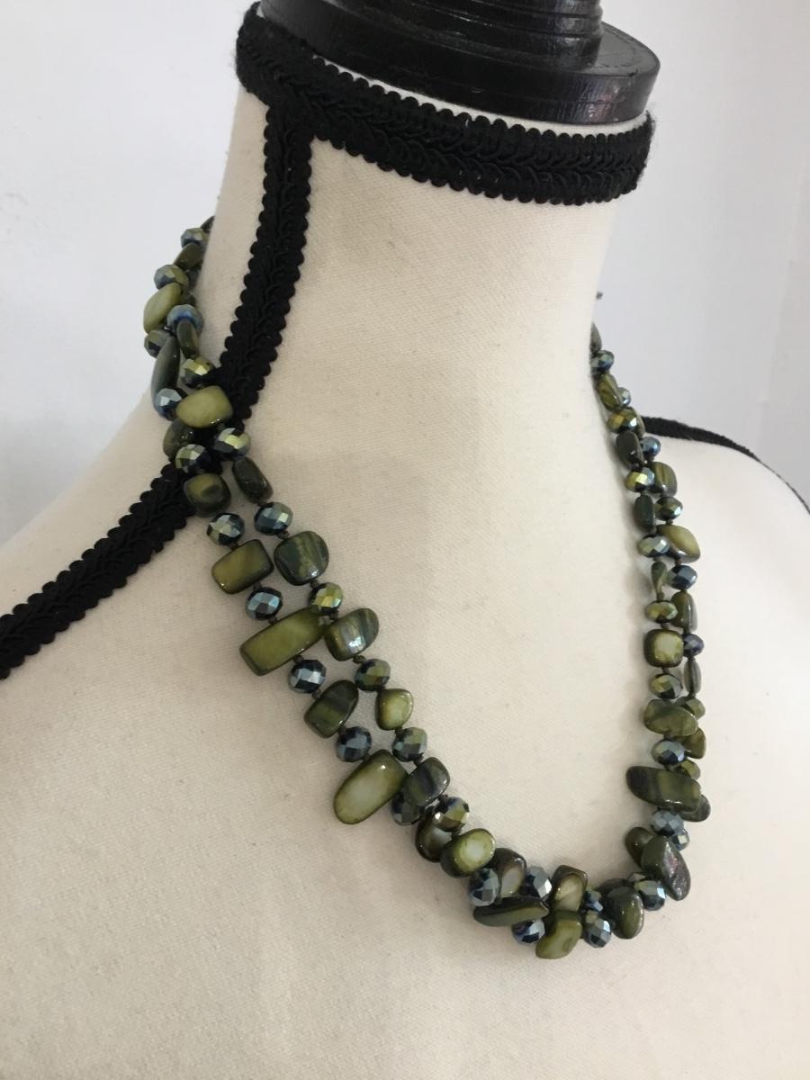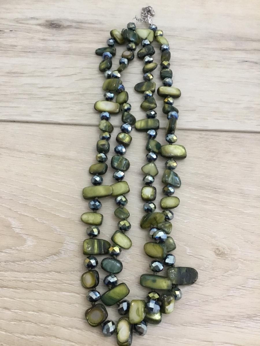 Double strand green glass shell type statement, necklace