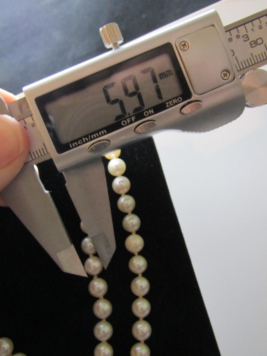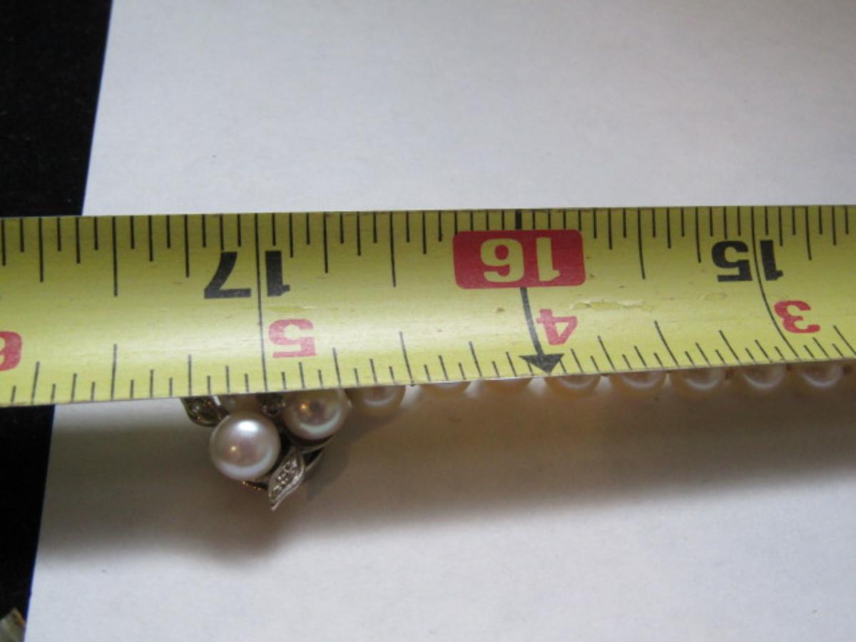 Double Strand Pearl Necklace with 14 Karat White Gold Clasp and Diamond Accents. Pearls are nearly 6mm in diameter. Necklace is approx 17 inches long. All measurements are approximate.