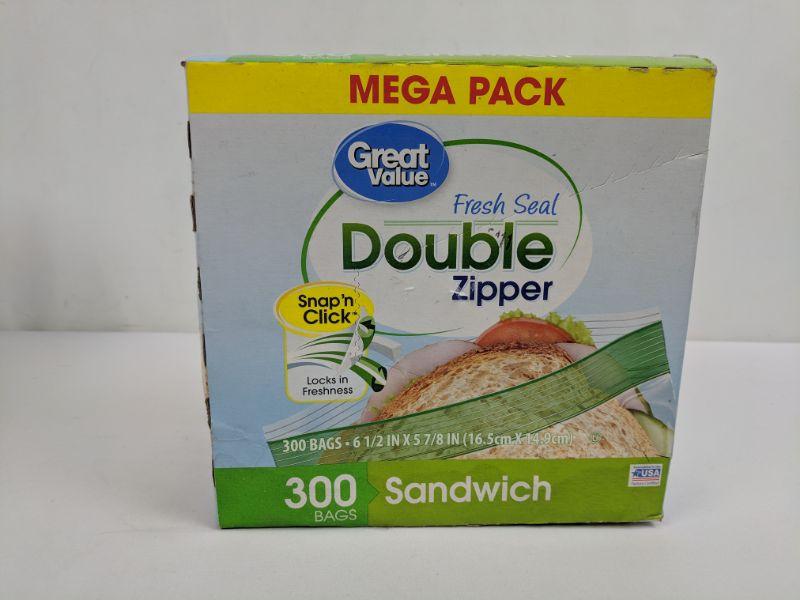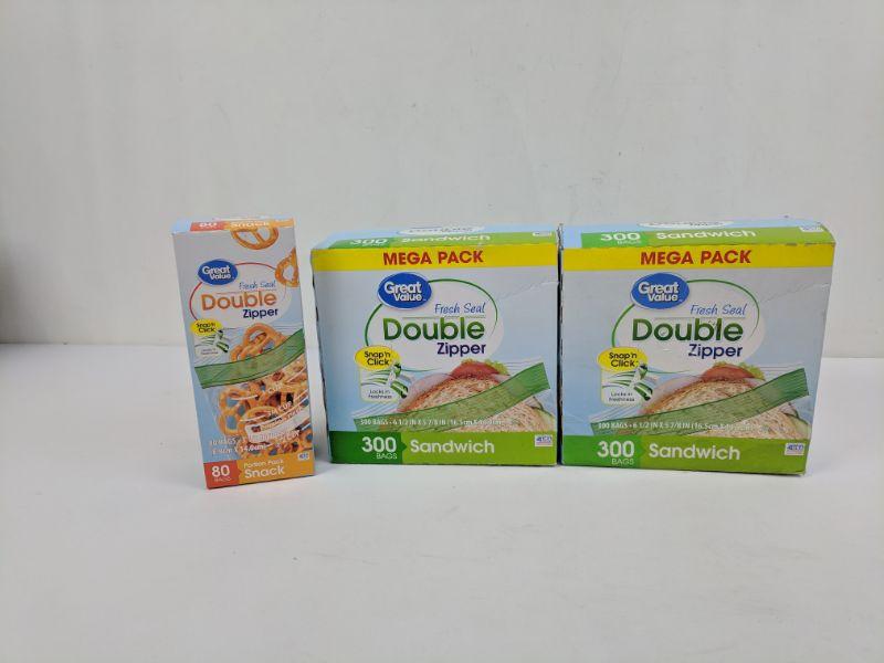 Double Zipper Bags, 2-300ct Sandwich Bags & 1-80ct Snack Bags - New