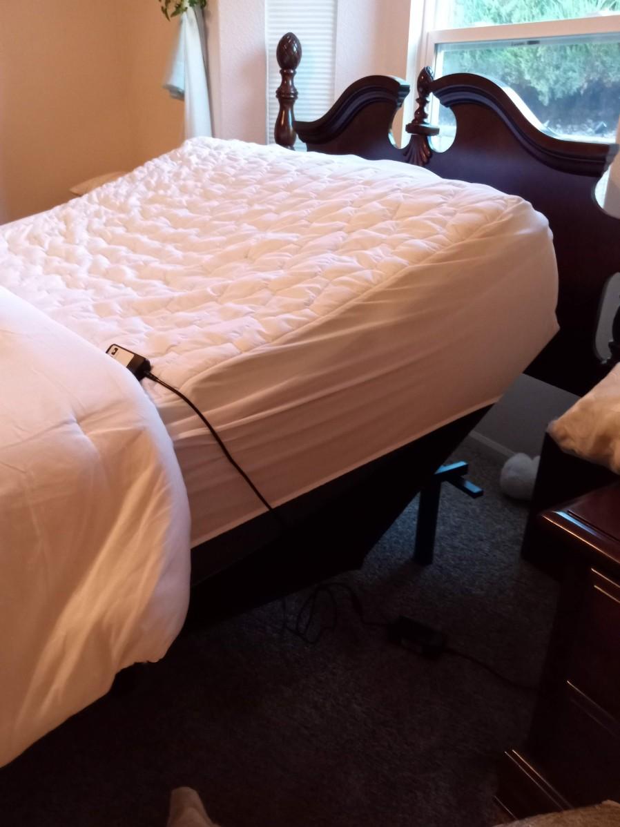 VERY CLEAN AND FAIRLY NEW DOUBLE-SIZE PILLOW TOP PLATFORM BED. IT INCLUDES A REMOTE TO RAISE THE UPPER HALF OF THE BED AND ALSO INCLUDES A VERY NICE HEADBOARD