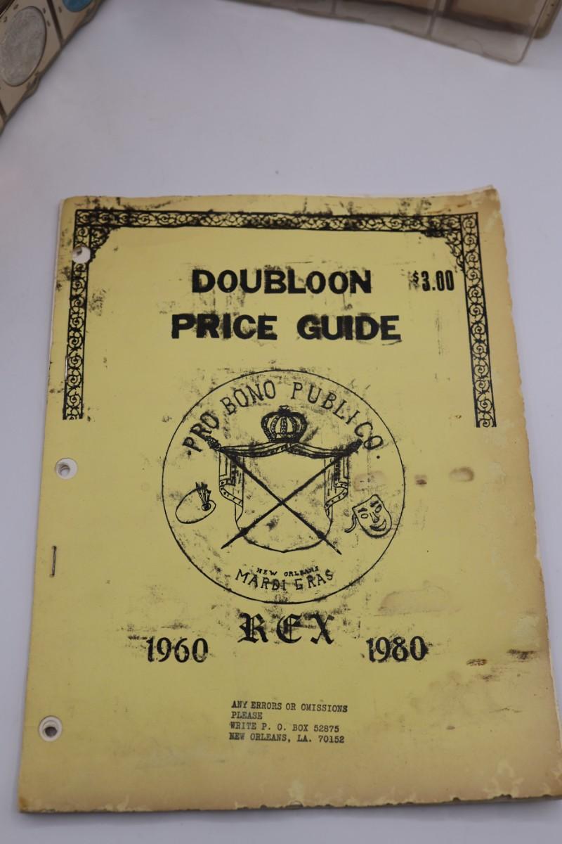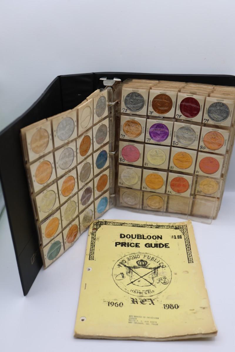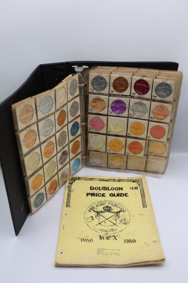 Large binder of doubloons from the 1960s - 1980s. Along with a Doubloon price guide from the 1960s - 1980s.