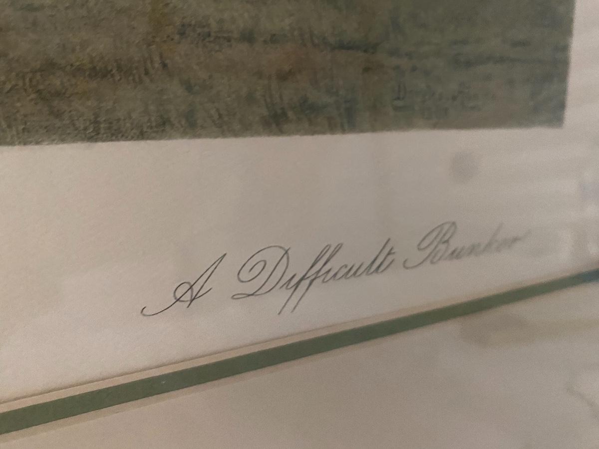 Titled A Difficult Bunker. Douglas Adams 1893. Measures 27.5”h x 35w framed. Shipping is available for this item. Buyer pays all shipping fees. Pick Up of Purchased Items will be on Saturday the 16th at Morningstar Storage in Bluffton, SC. 1110 Fording Island Rd, Bluffton, SC 29910. At the end of the sale todayI will send out a SignUpGenius link to the winning bidder to schedule your your pick up time along with a contact phone number.