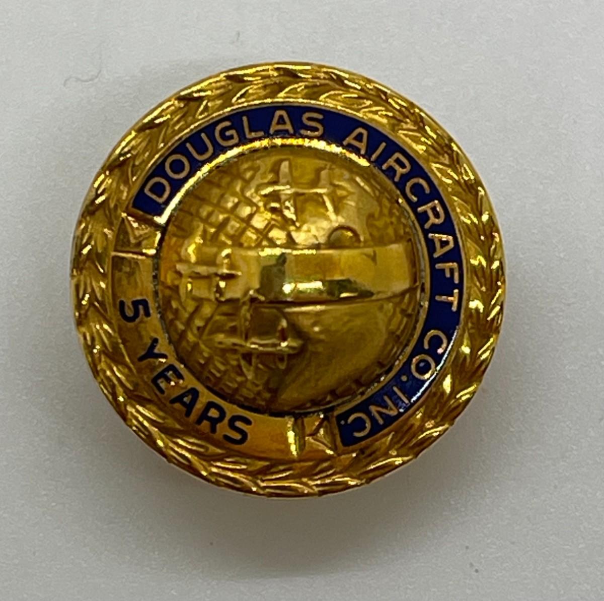 Douglas Aircraft Company 5 yr service Pin 10K 1/10 Gold filled screw on back