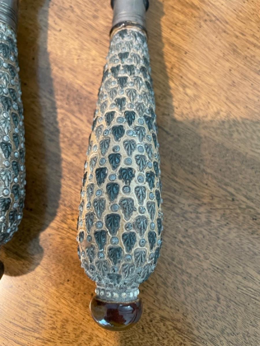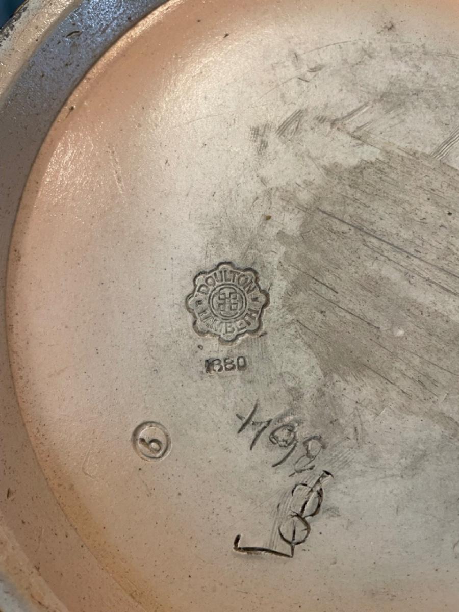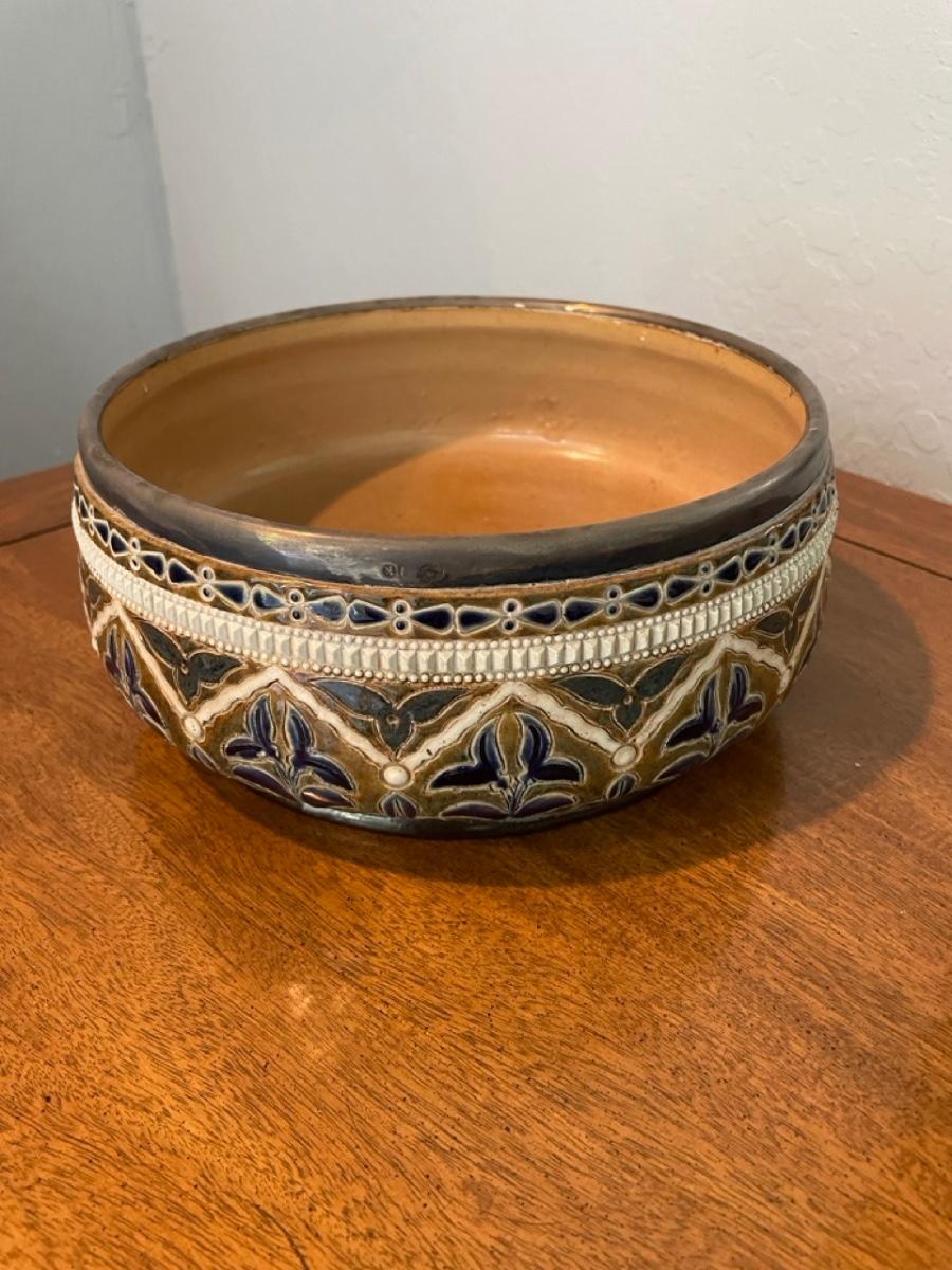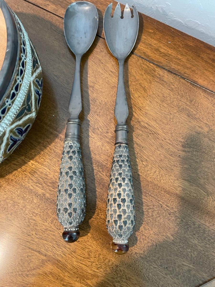 Doulton Lambeth silver rimmed salad bowl with plated serving pieces