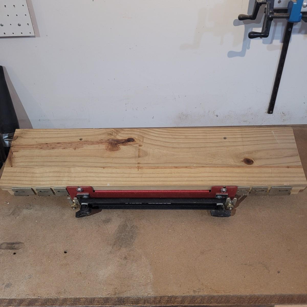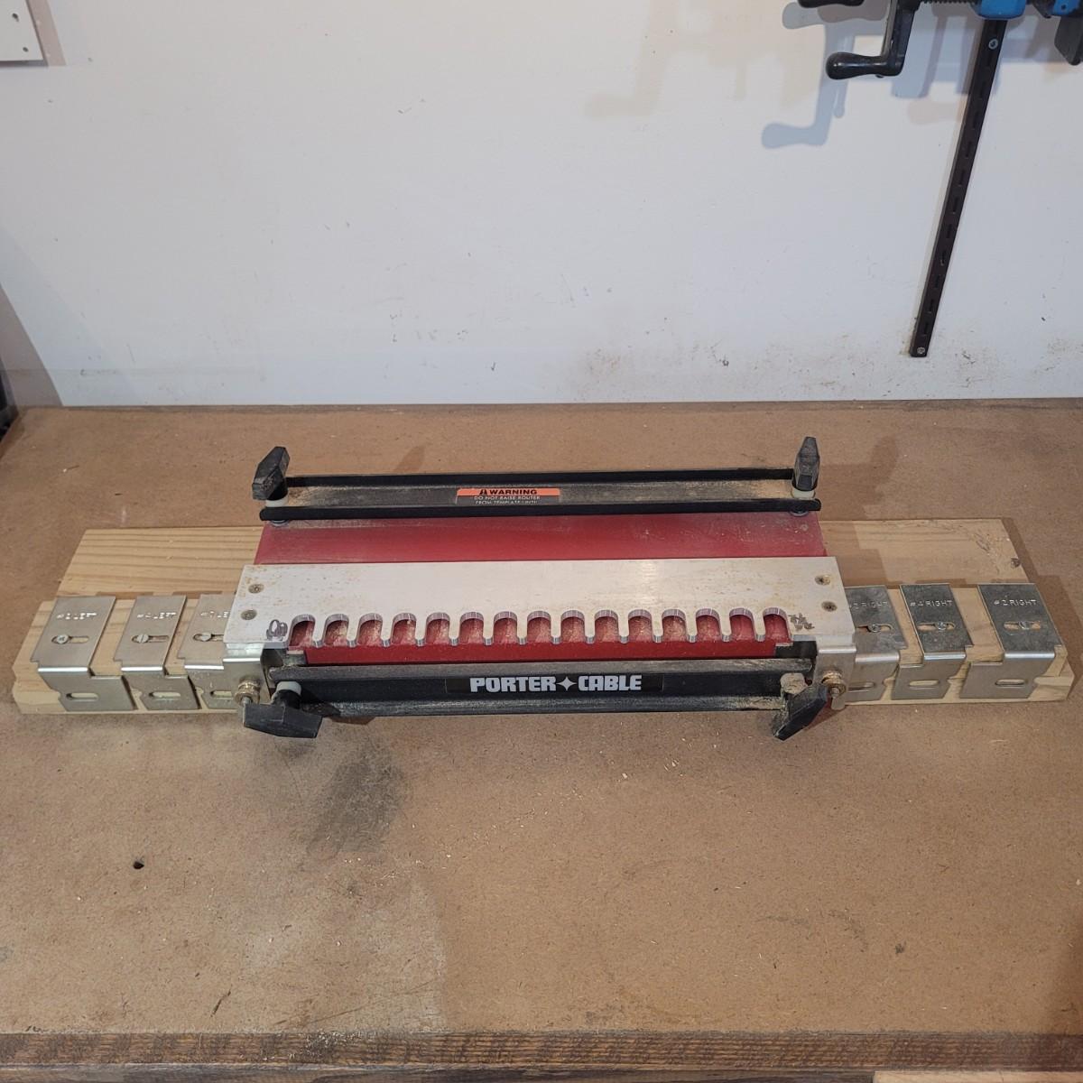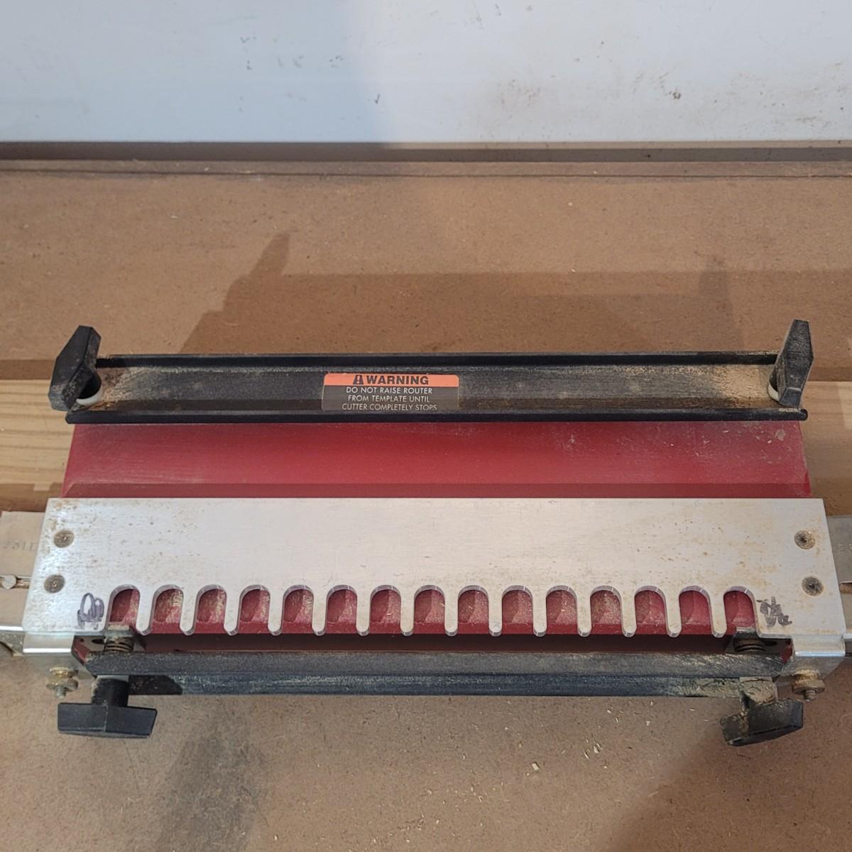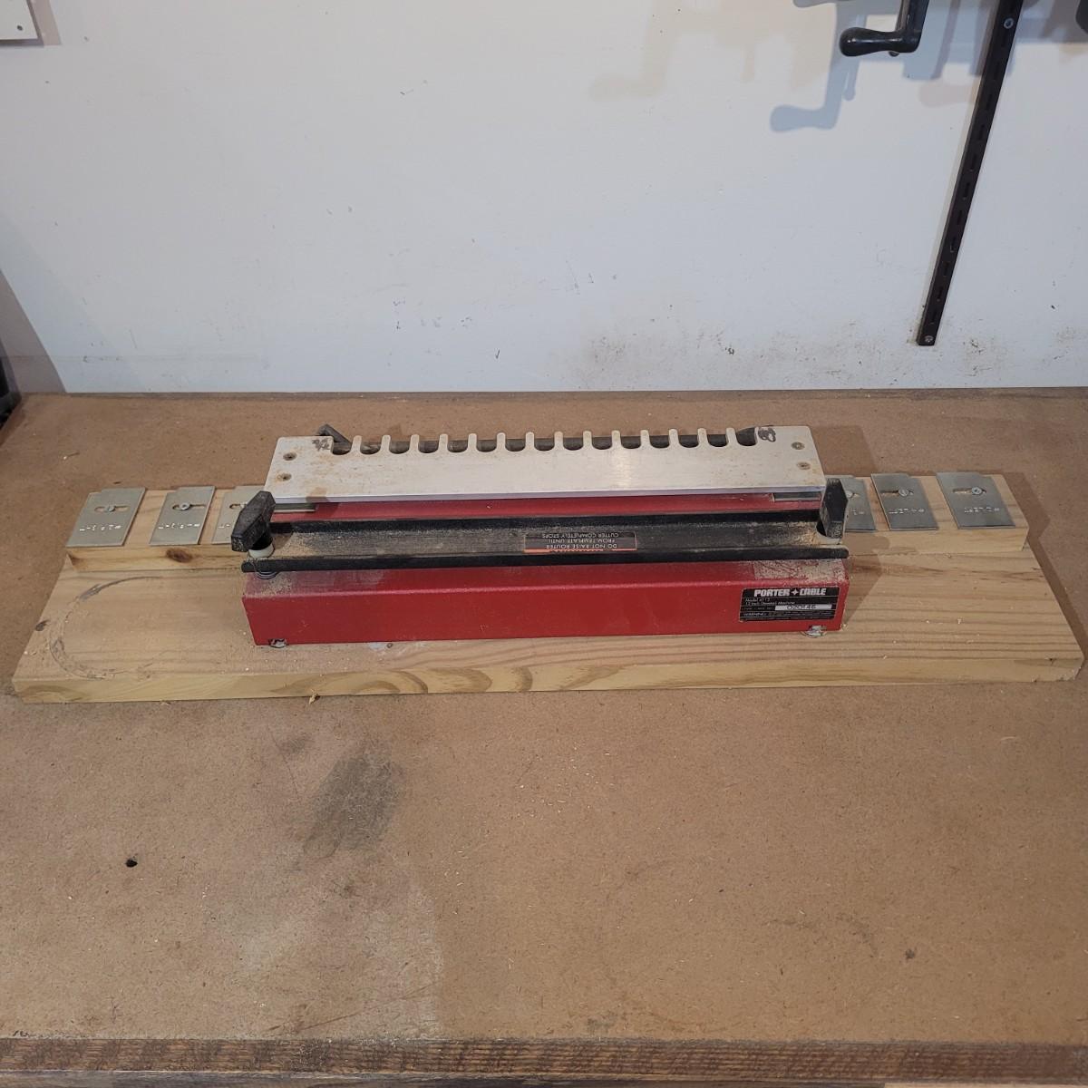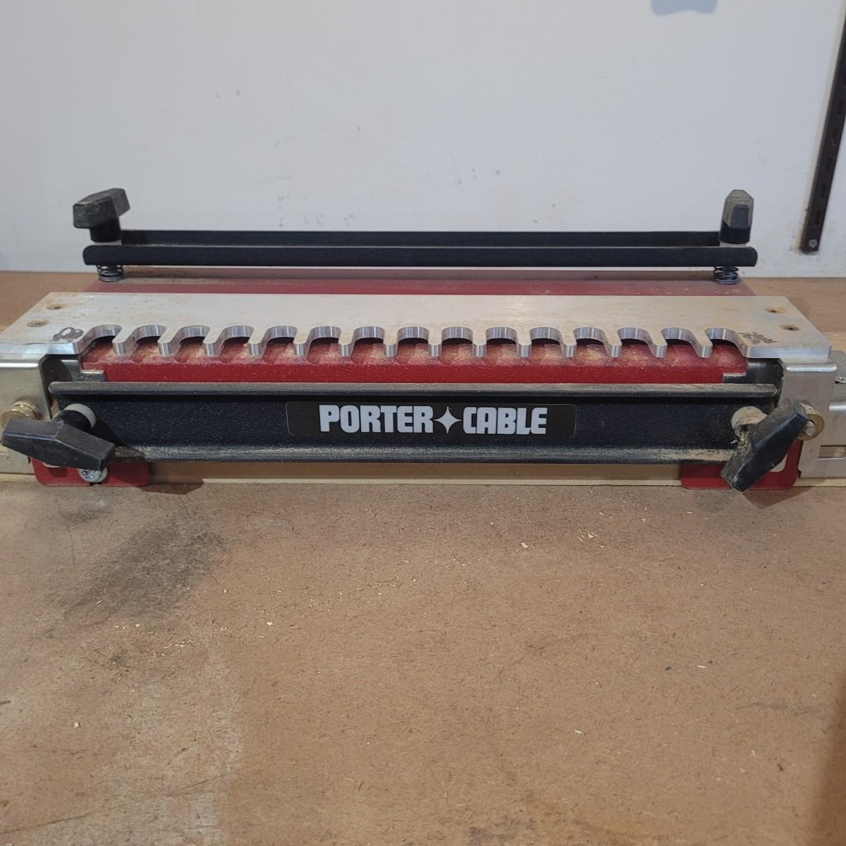 Porter Cable brand 12" dovetail machine. Item measures 30" x 9.5" x 6"H. Includes original instruction manual.