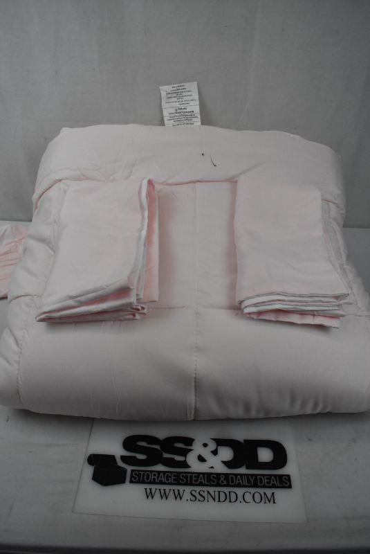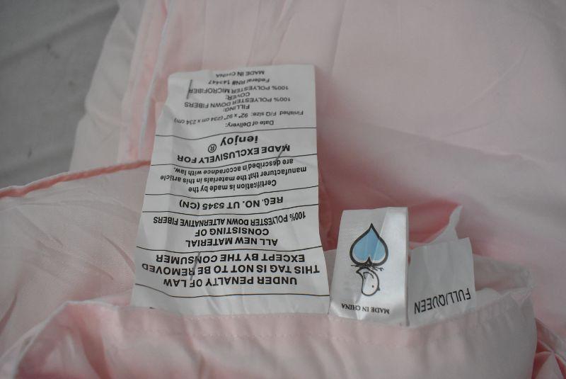 Noble Linens Premium Down Alternative Reversible 3-Piece Comforter Set, Full/Queen, Blush. Black Marker on edge