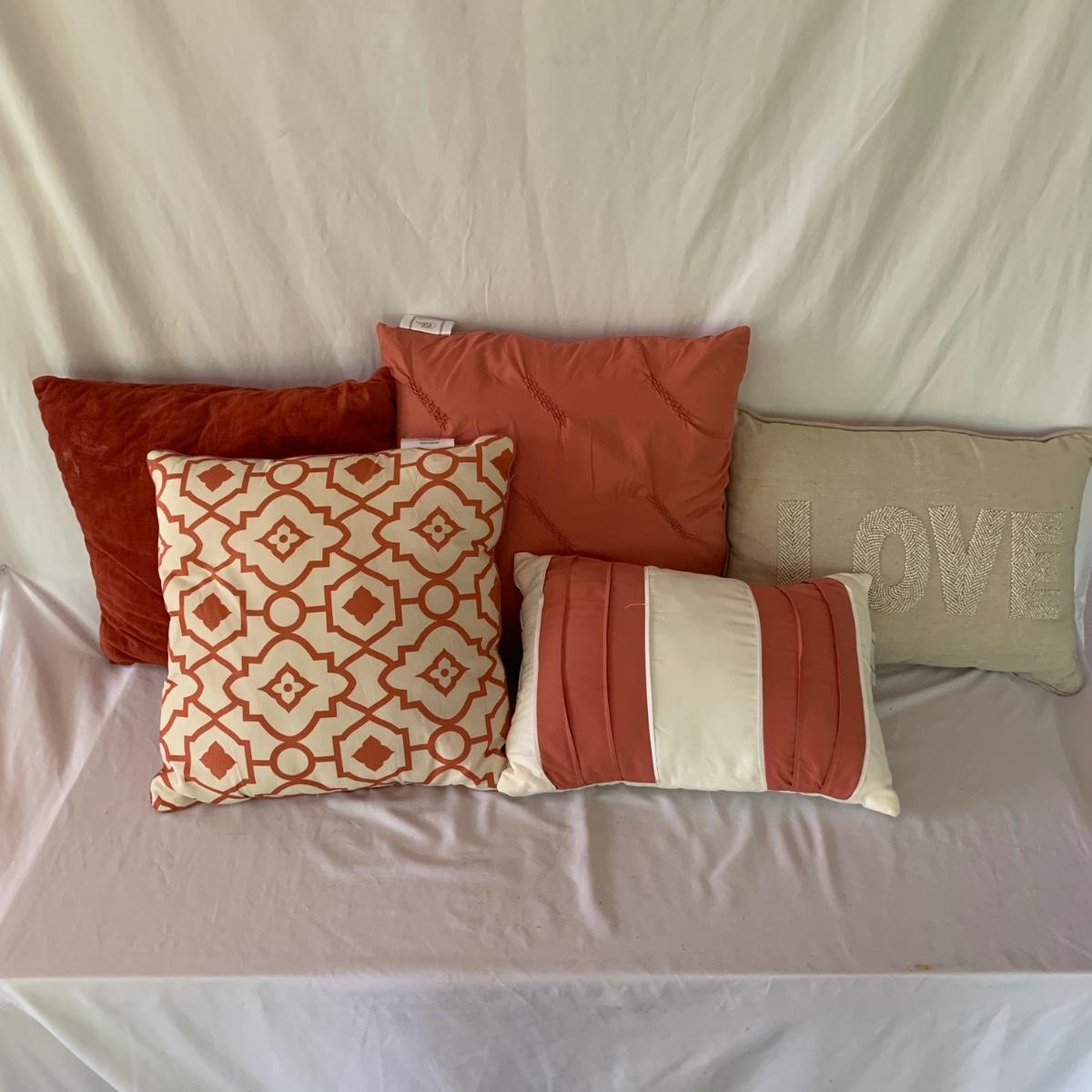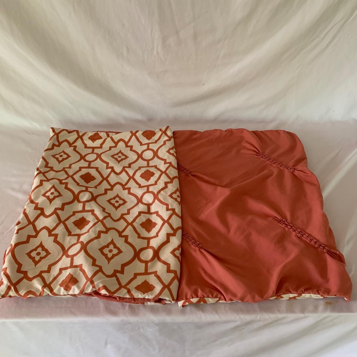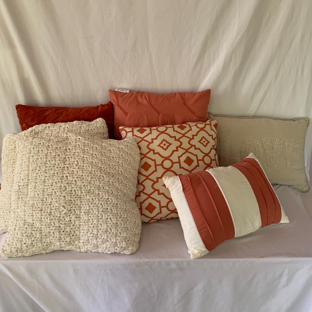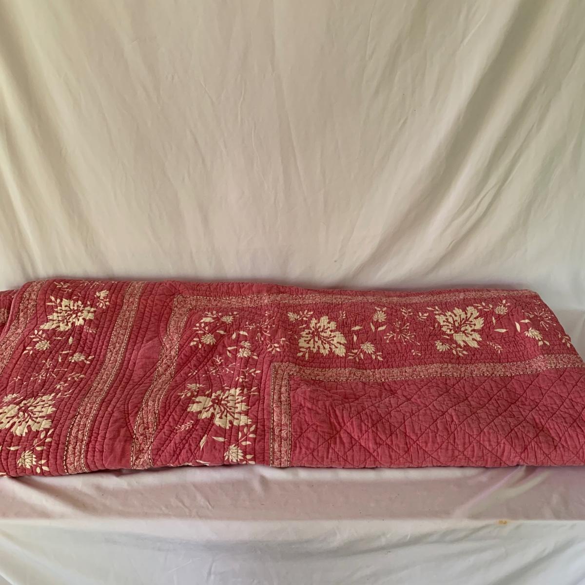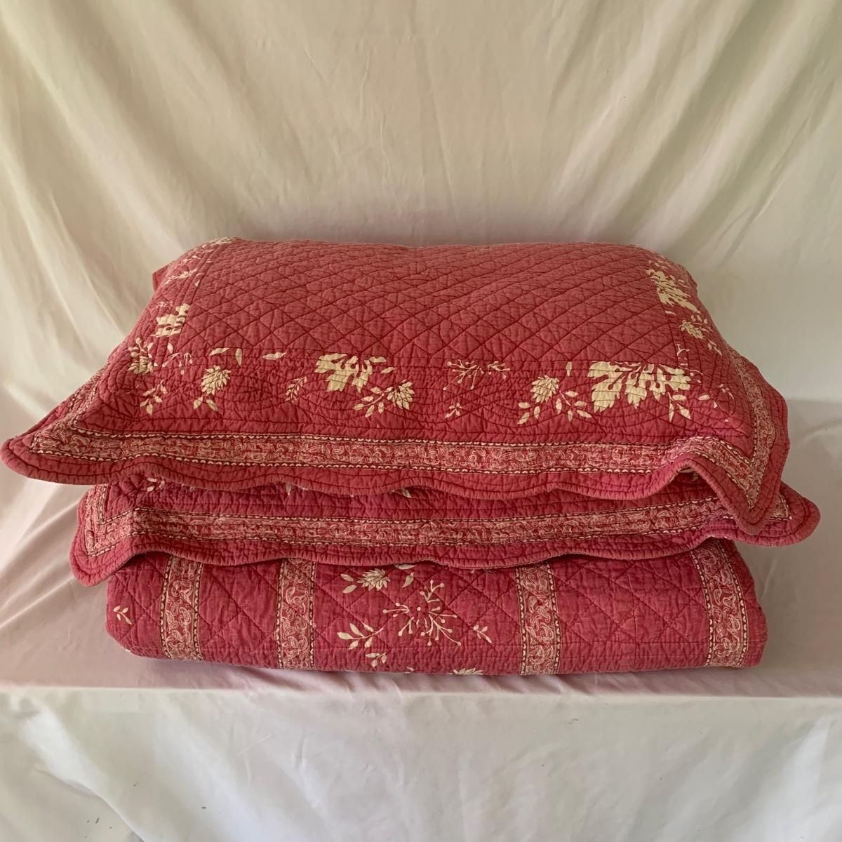 Lovely array of full-sized bed linens. This lot includes full-sized down comforter, two comforters with matching pillow shams, one set of full sheets, one additional pillow case, and seven throw pillows. Please note, the bed is for display purposes and is not included in this lot.